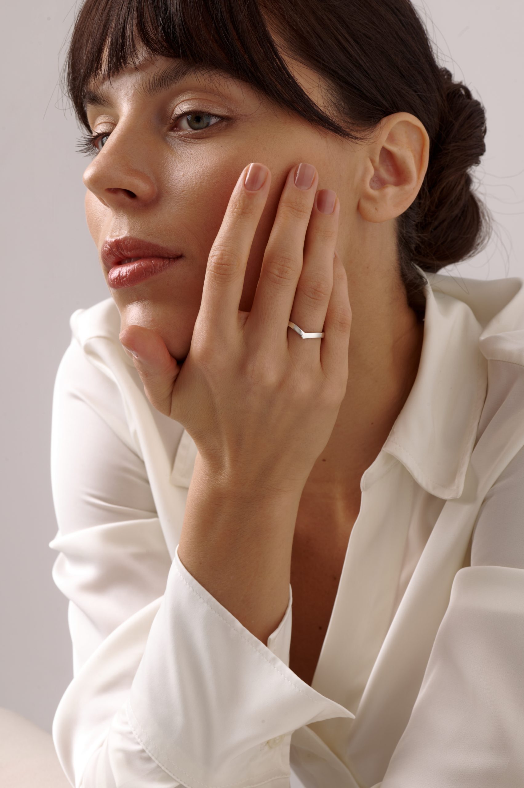 Элегантное минималистичное кольцо в виде галочки – это воплощение утонченного стиля.