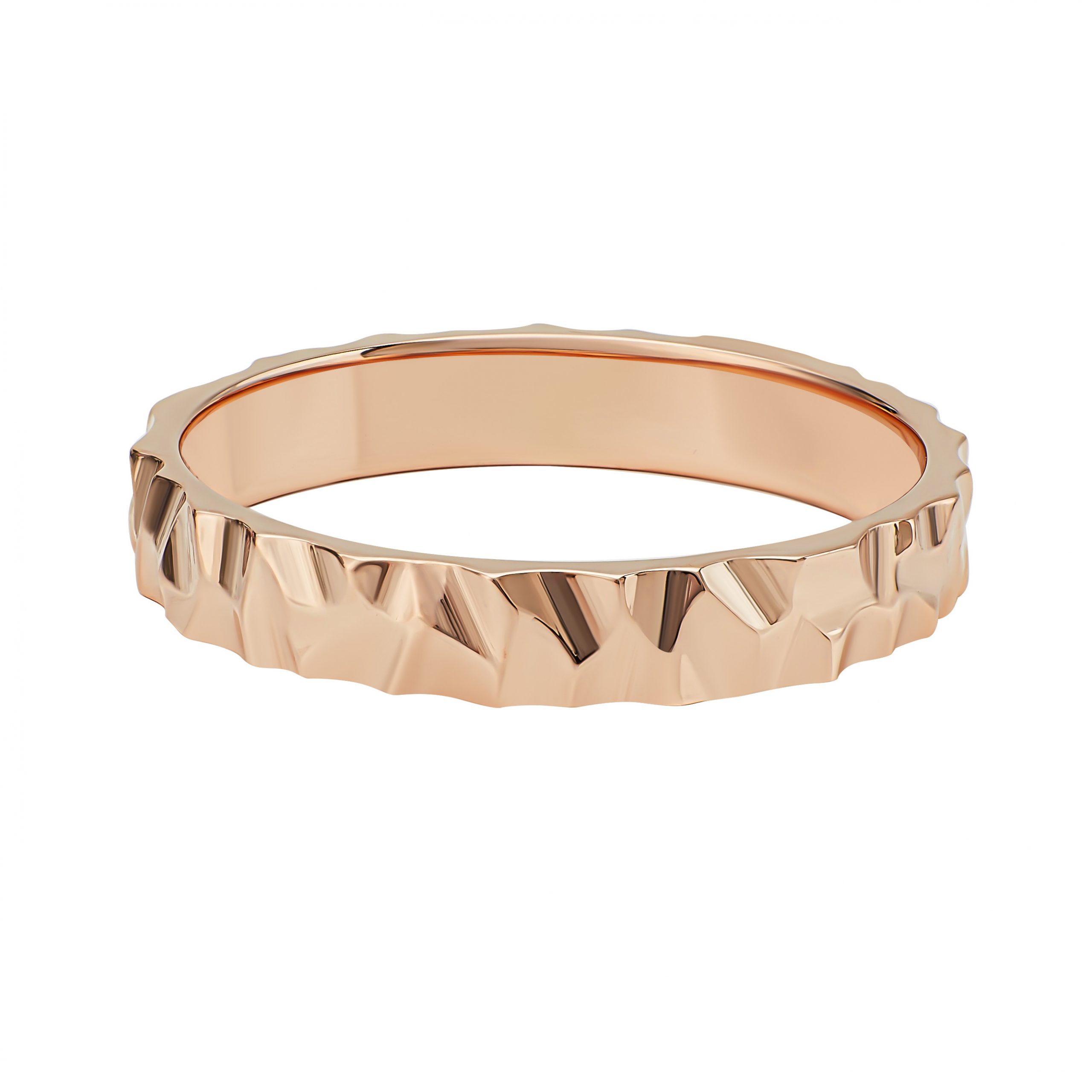 Кольцо обручальное глянцевая прямая шайба с ямчатой фактурой в розовом золоте