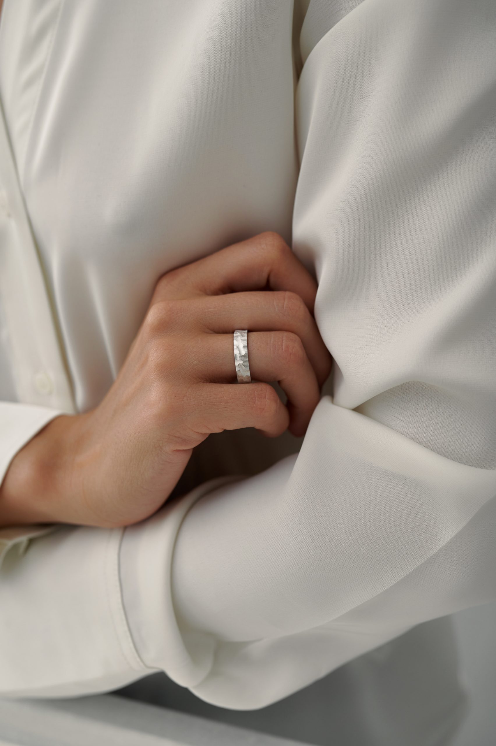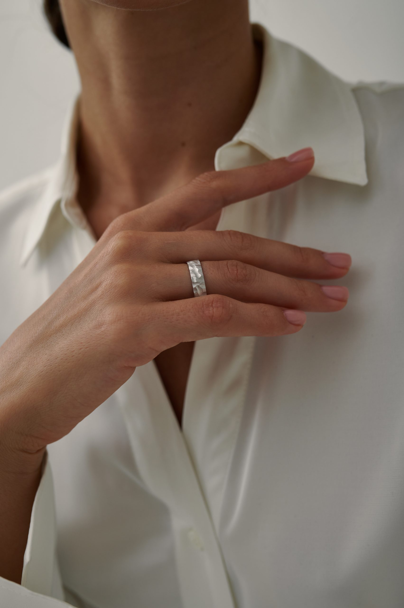 *Кольцо на фото представлено в белом золоте с матовым покрытием, шириной 5 мм
