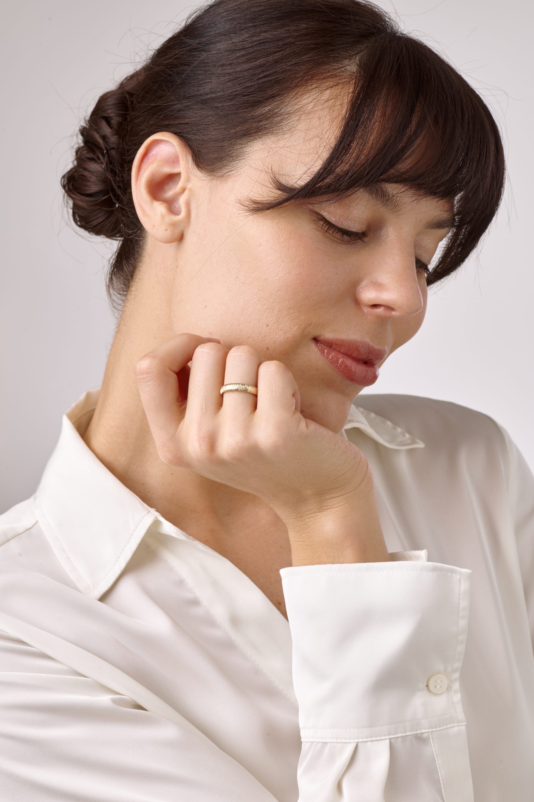 *Кольцо на фото представлено в желтом золоте, шириной 4 мм