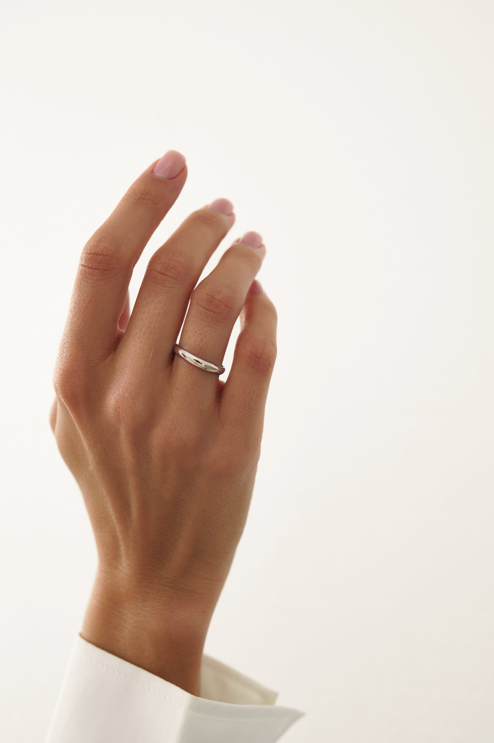 На фото изображены полусферы из белого золота без родия, шириной 3 мм.