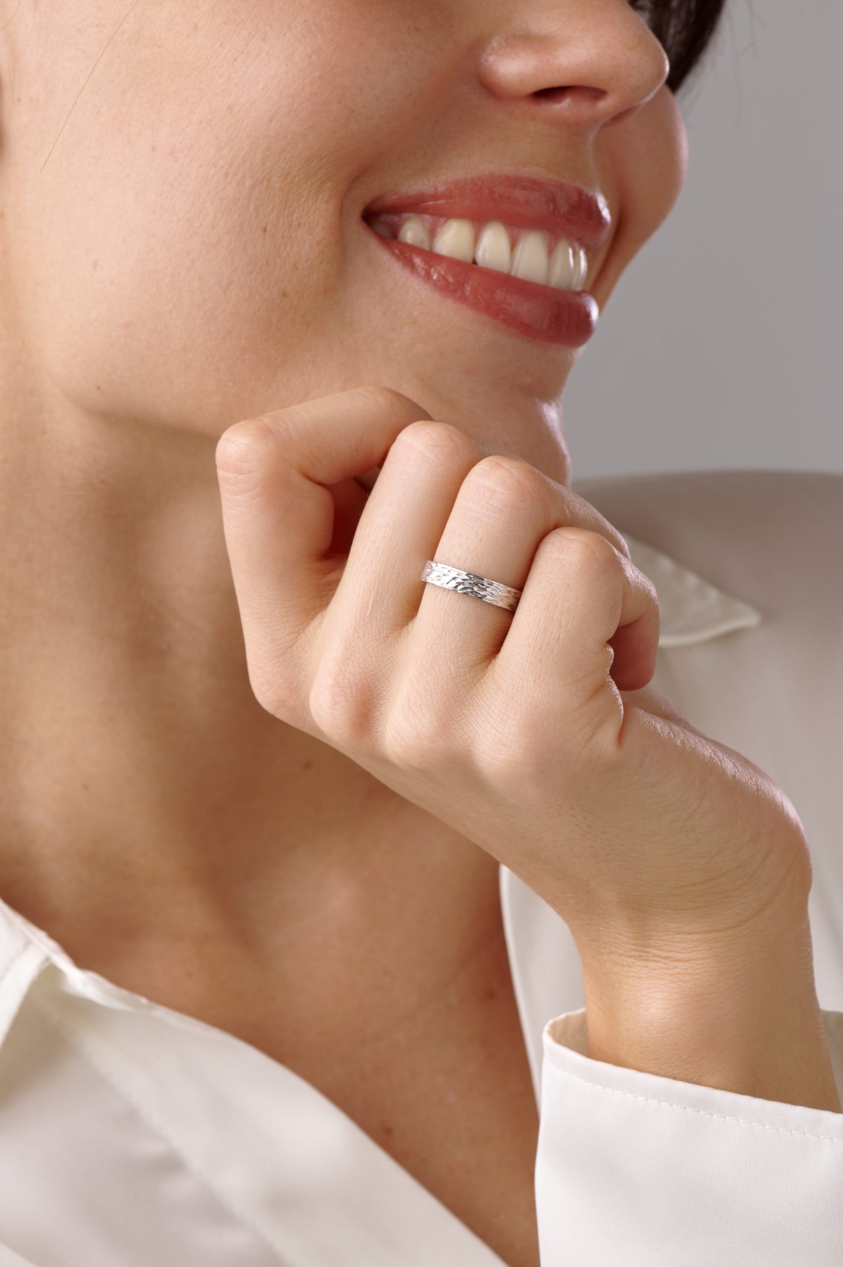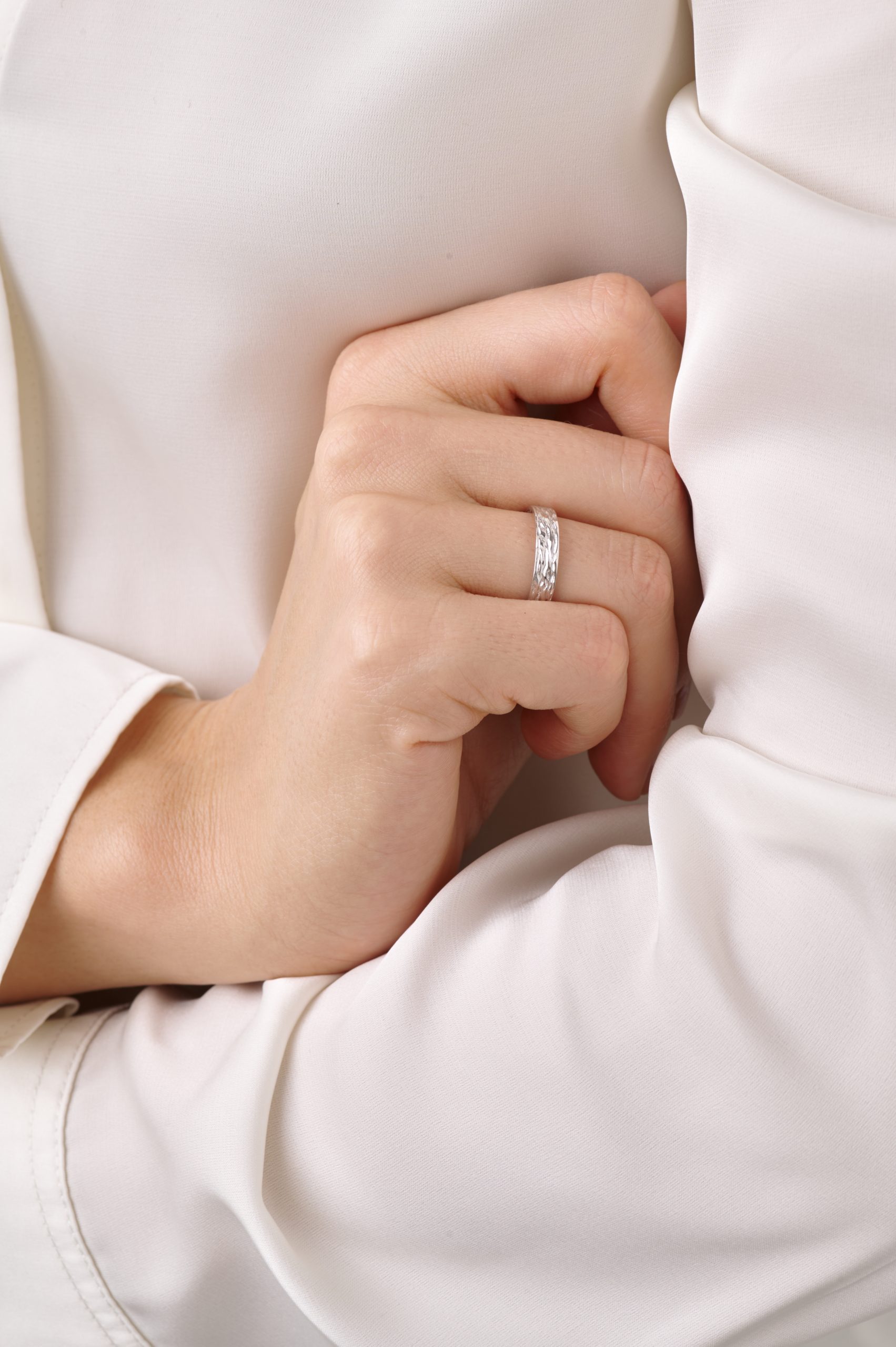 *Кольцо на фото представлено в белом золоте, шириной 4 мм