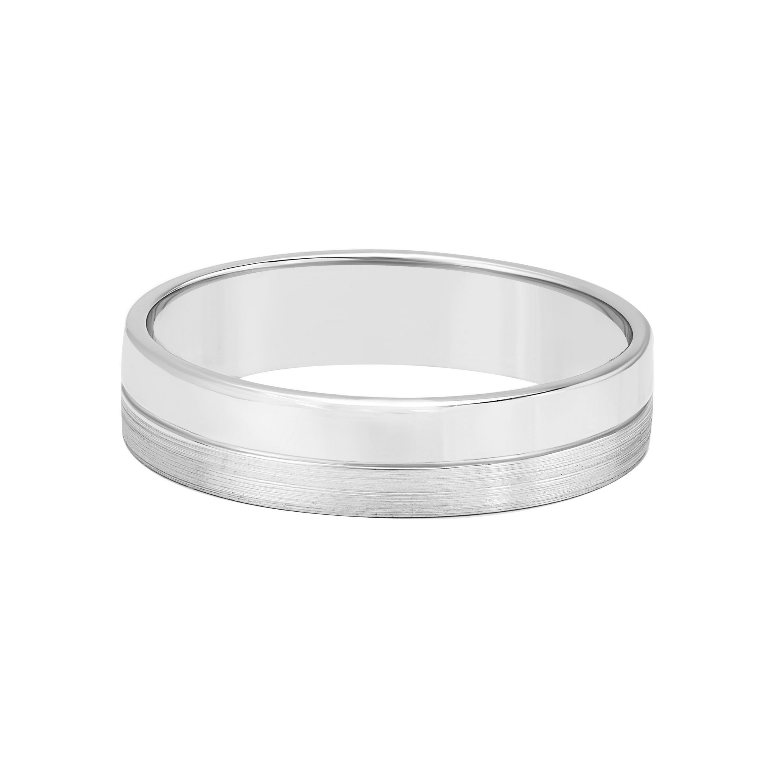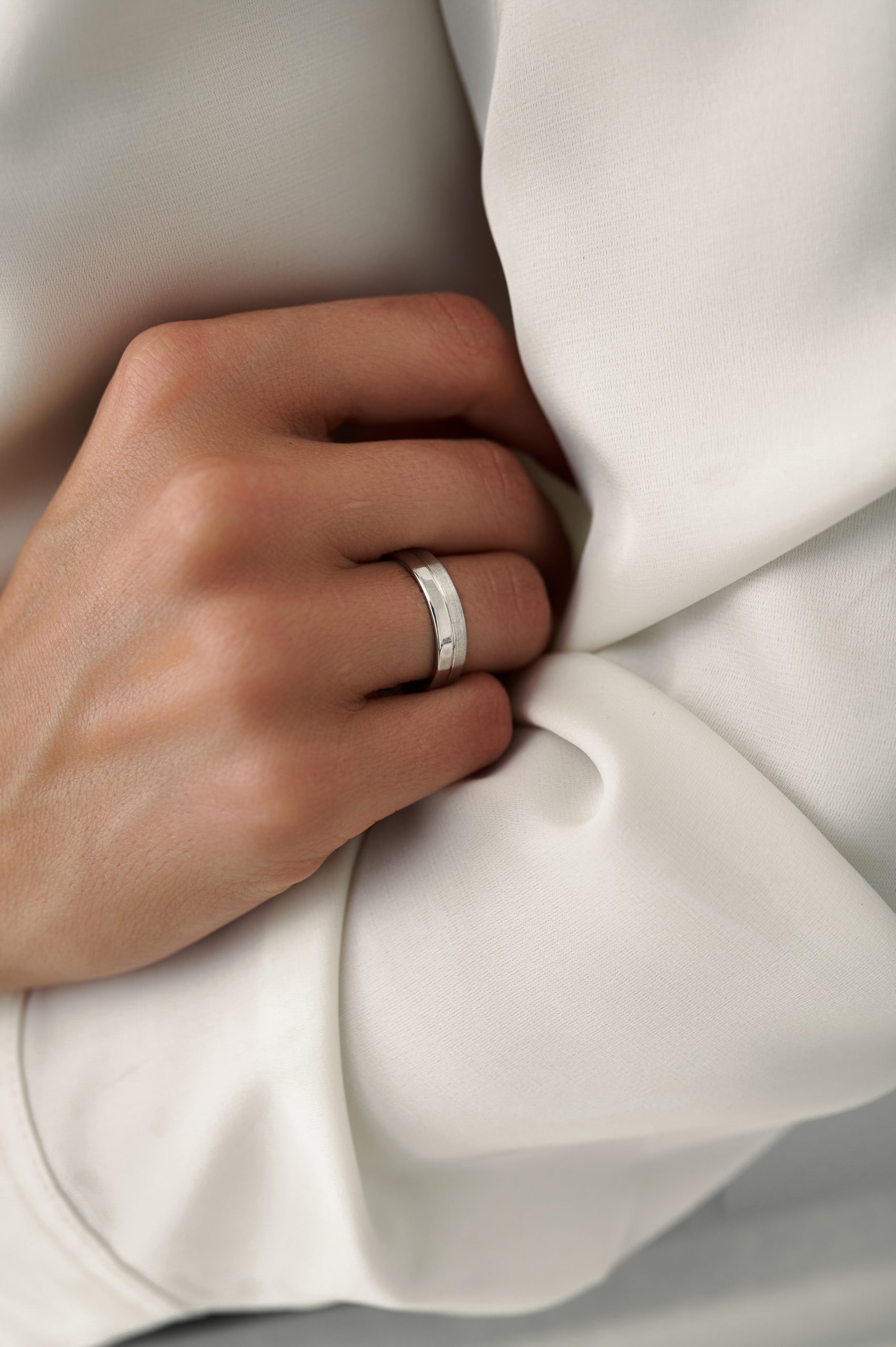 Дизайн, основанный на контрасте: гладкий блеск глянца и выразительная фактура продольной матовки подчёркивают противоположность текстур, создавая необычный и запоминающийся образ. Такое кольцо символизирует баланс разных характеров — как это часто бывает и в отношениях.