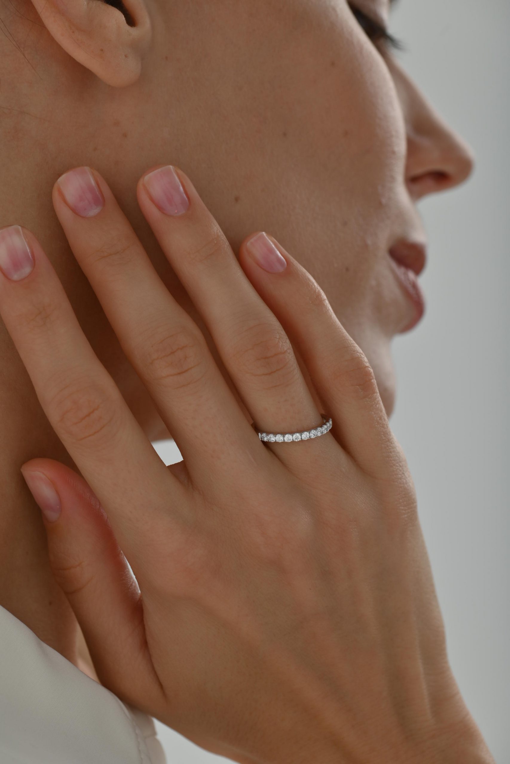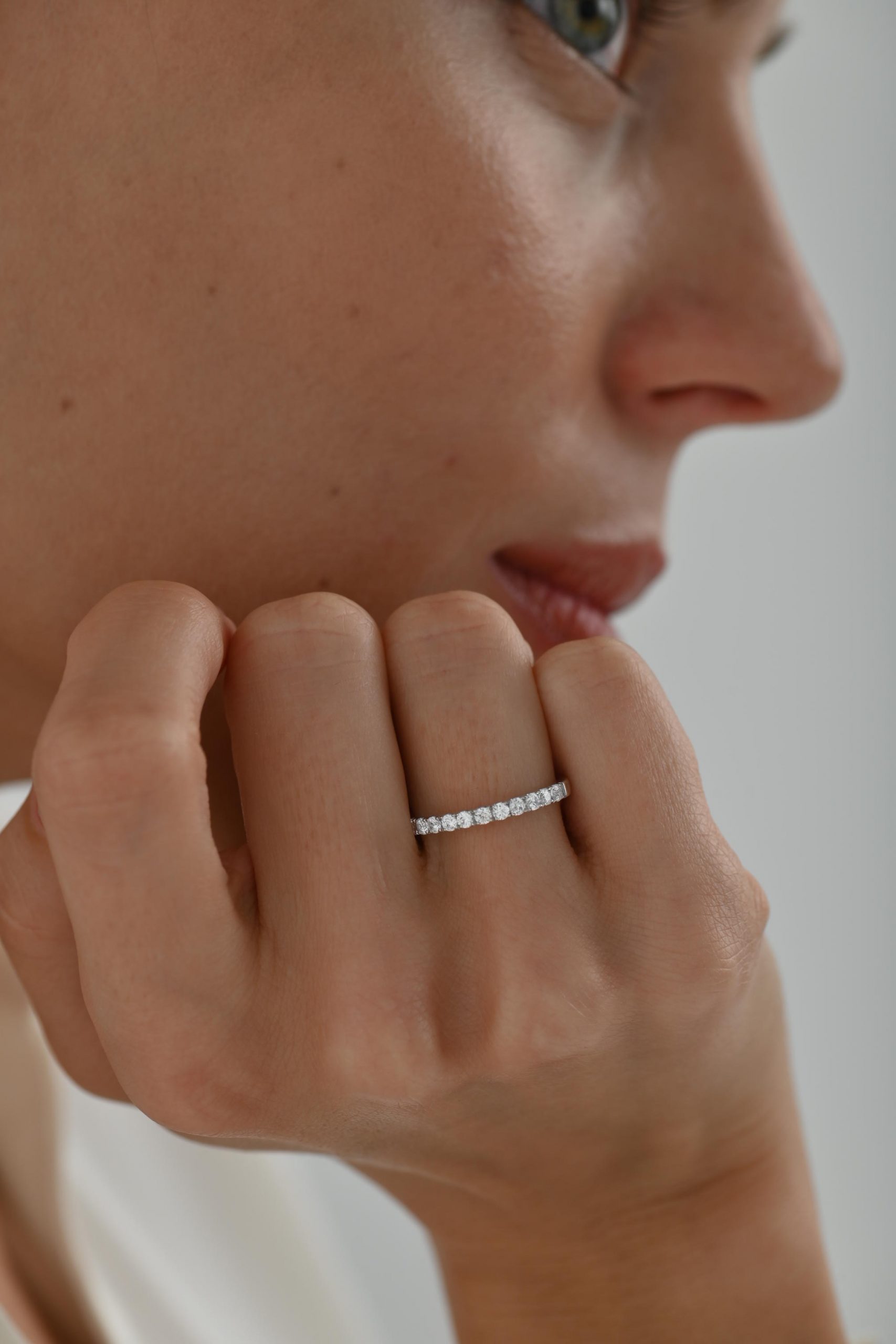 Кольцо с дорожкой бриллиантов, также известное как кольцо вечности, — один из самых популярных вариантов обручальных колец. Оно символизирует бесконечность чувств и идеально подойдёт не только для свадьбы, но и как подарок на годовщину или в честь рождения ребёнка.