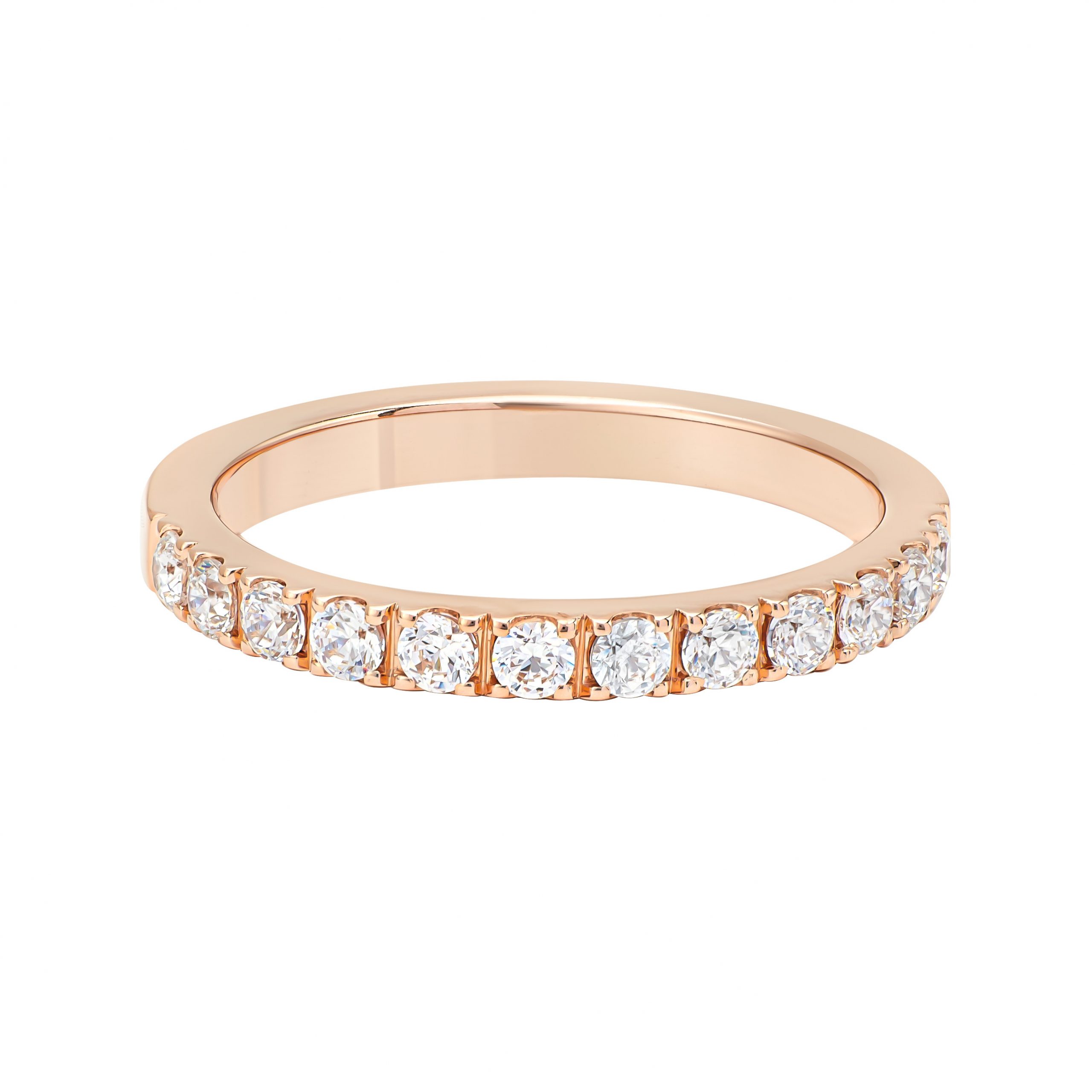 Кольцо обручальное с бриллиантами открытая дорожка 2 мм в розовом золоте