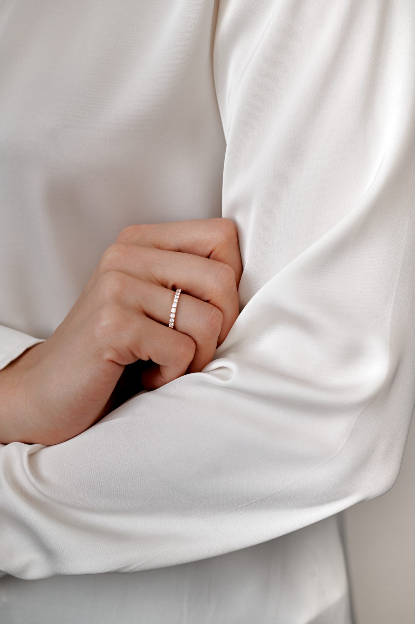 *Кольцо на фото представлено в розовом золоте, размер камней — 2 мм на половину окружности