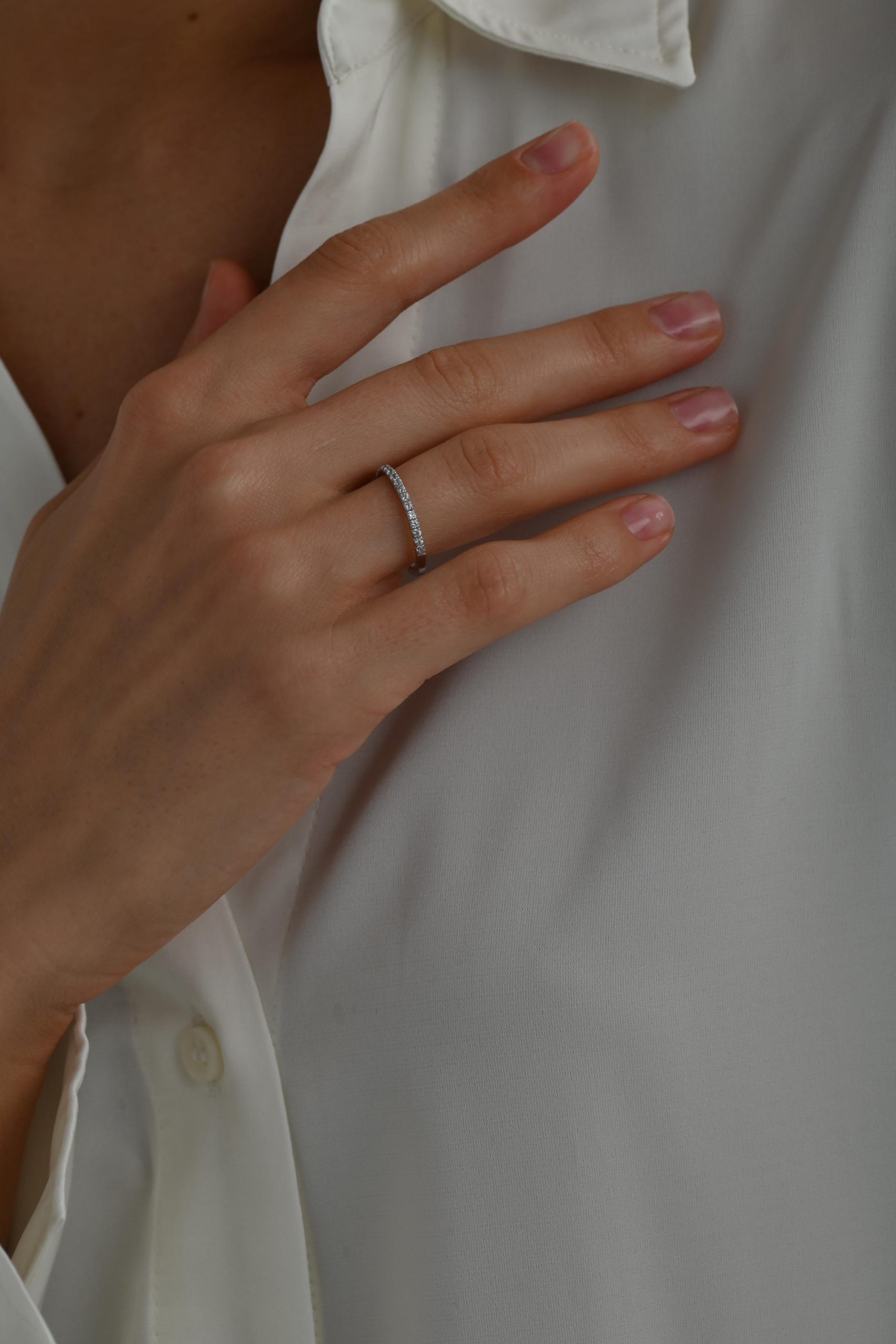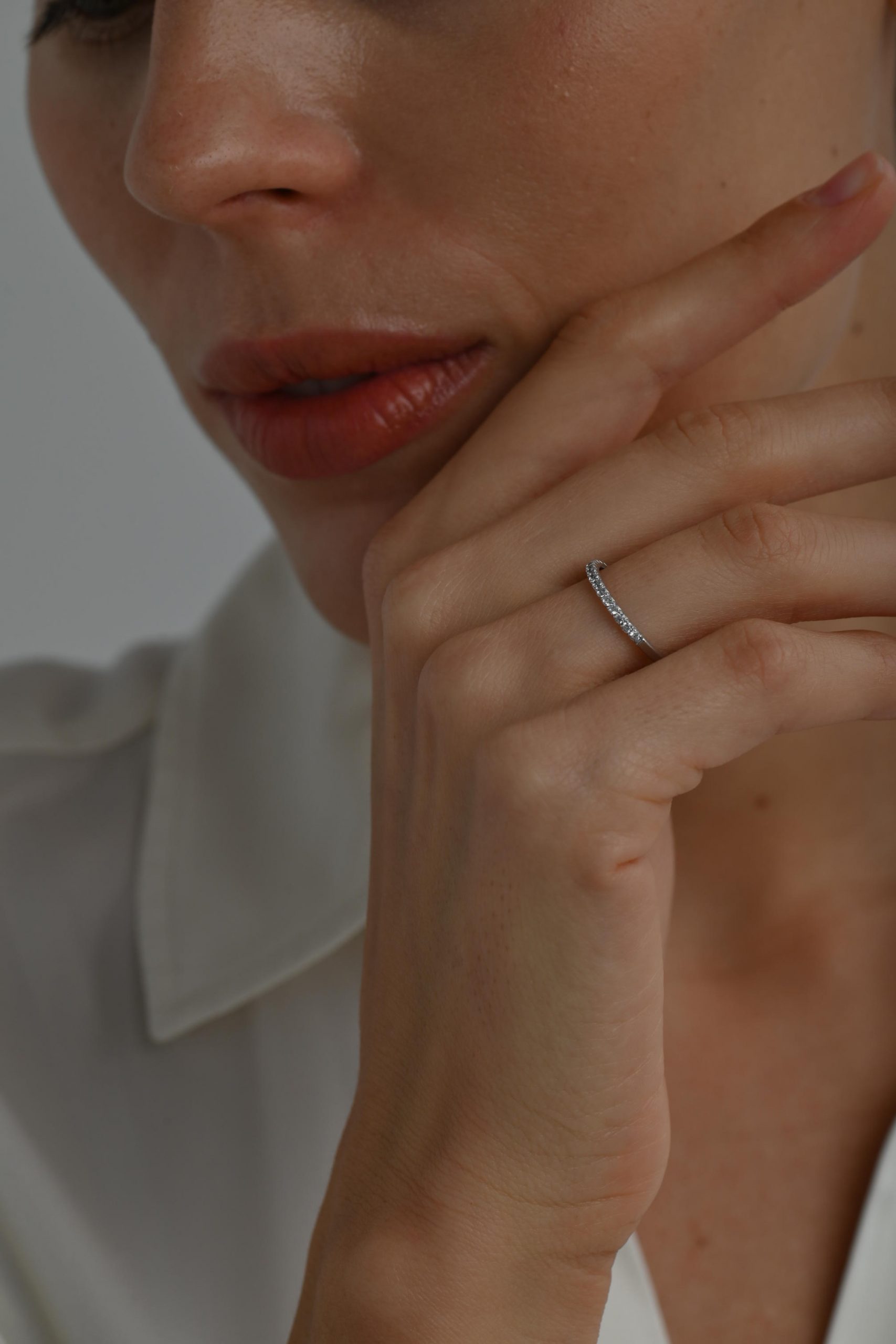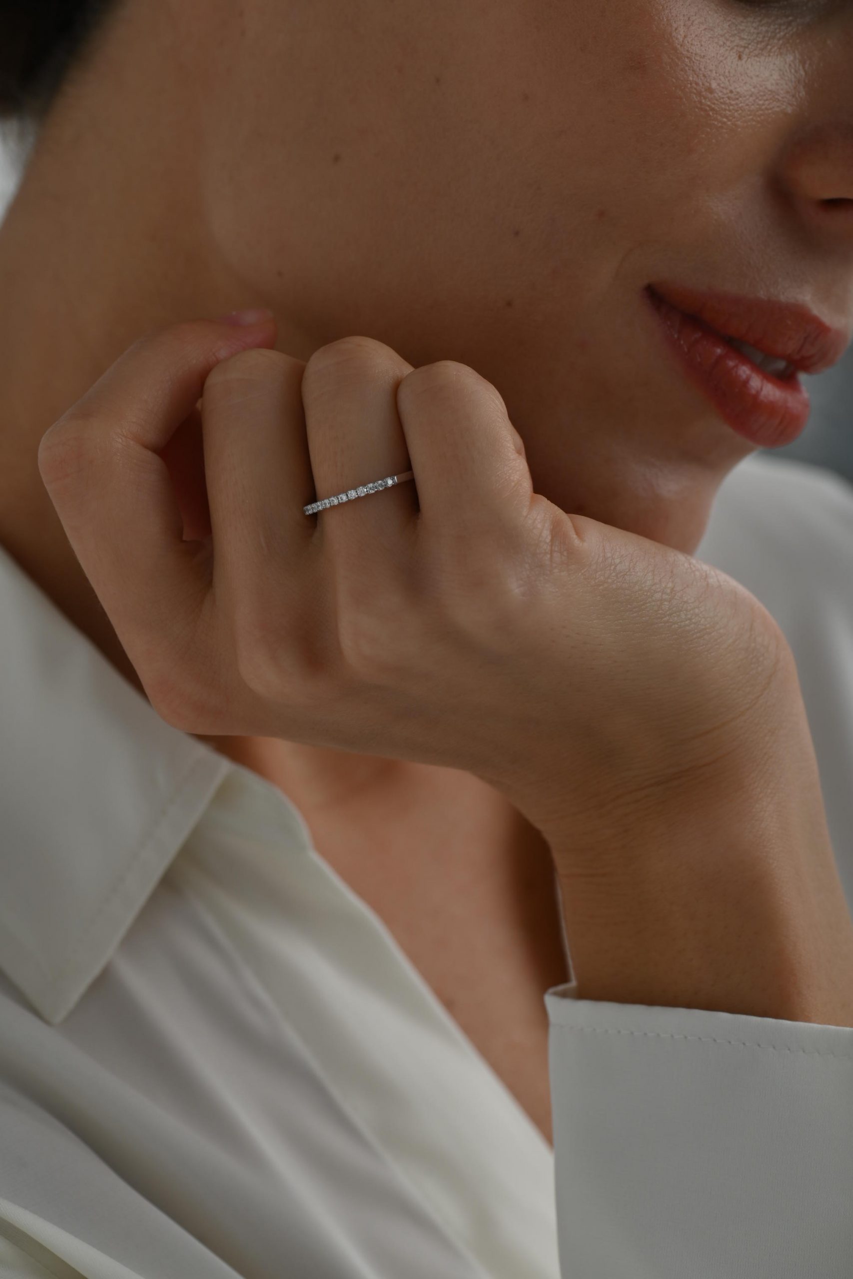 *Кольцо на фото представлено в белом золоте, размер камней 1,5 мм на половину окружности