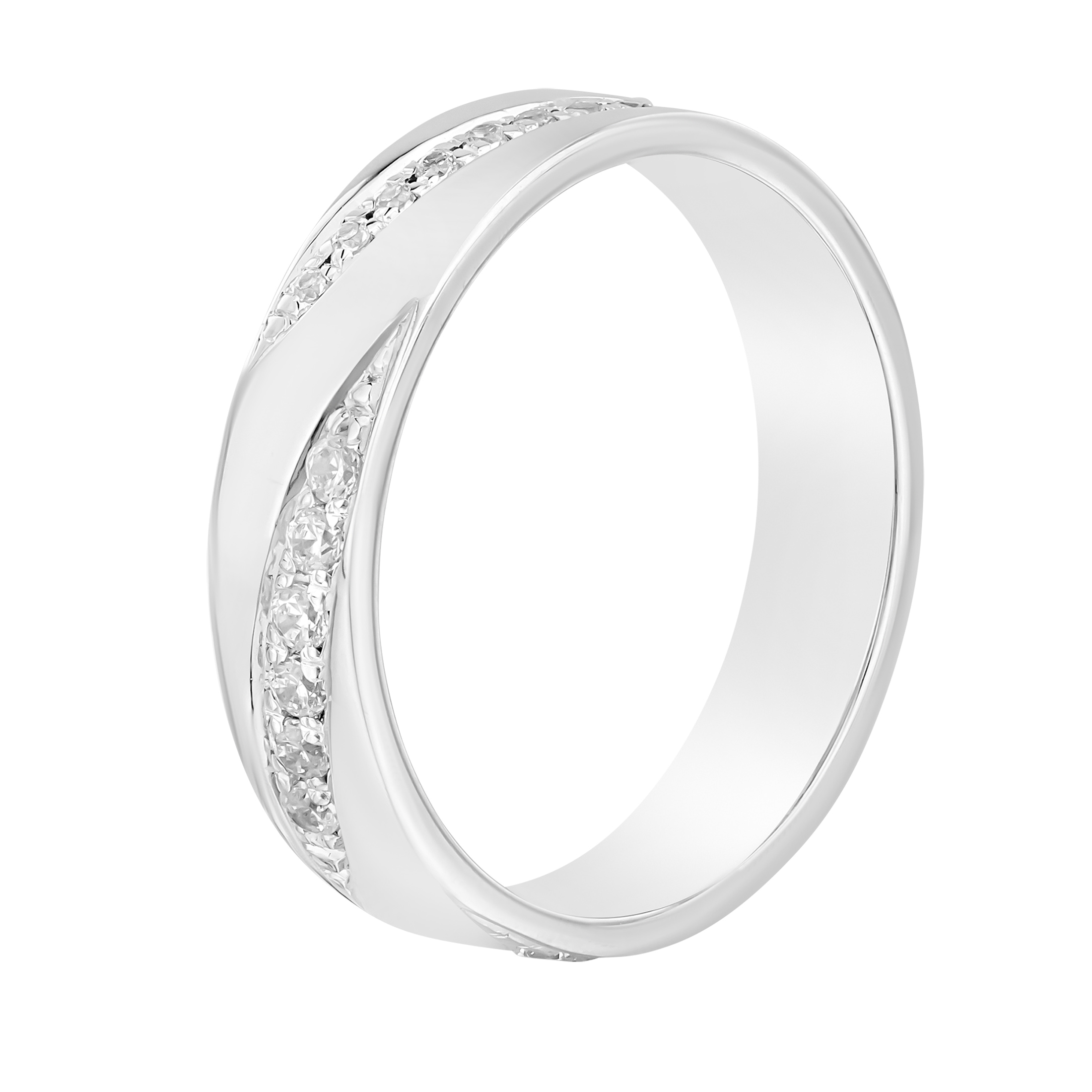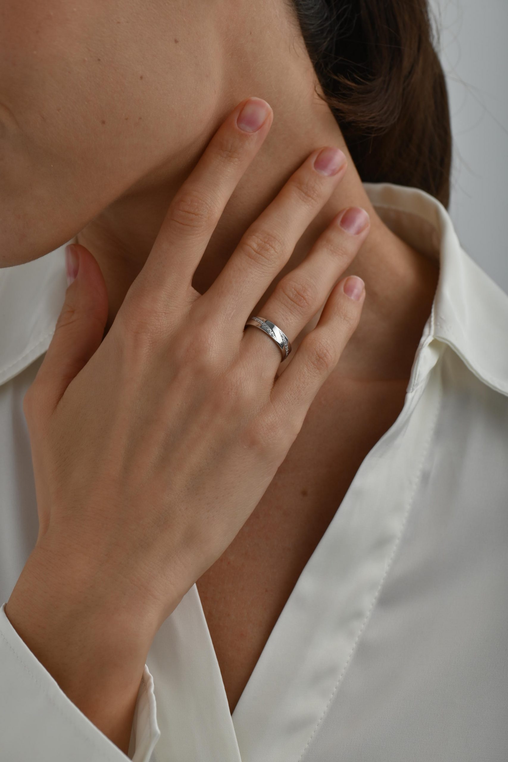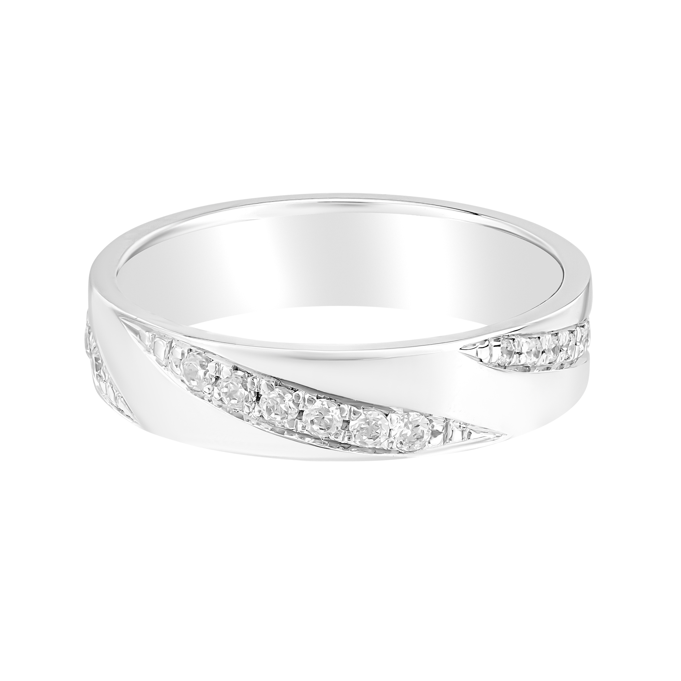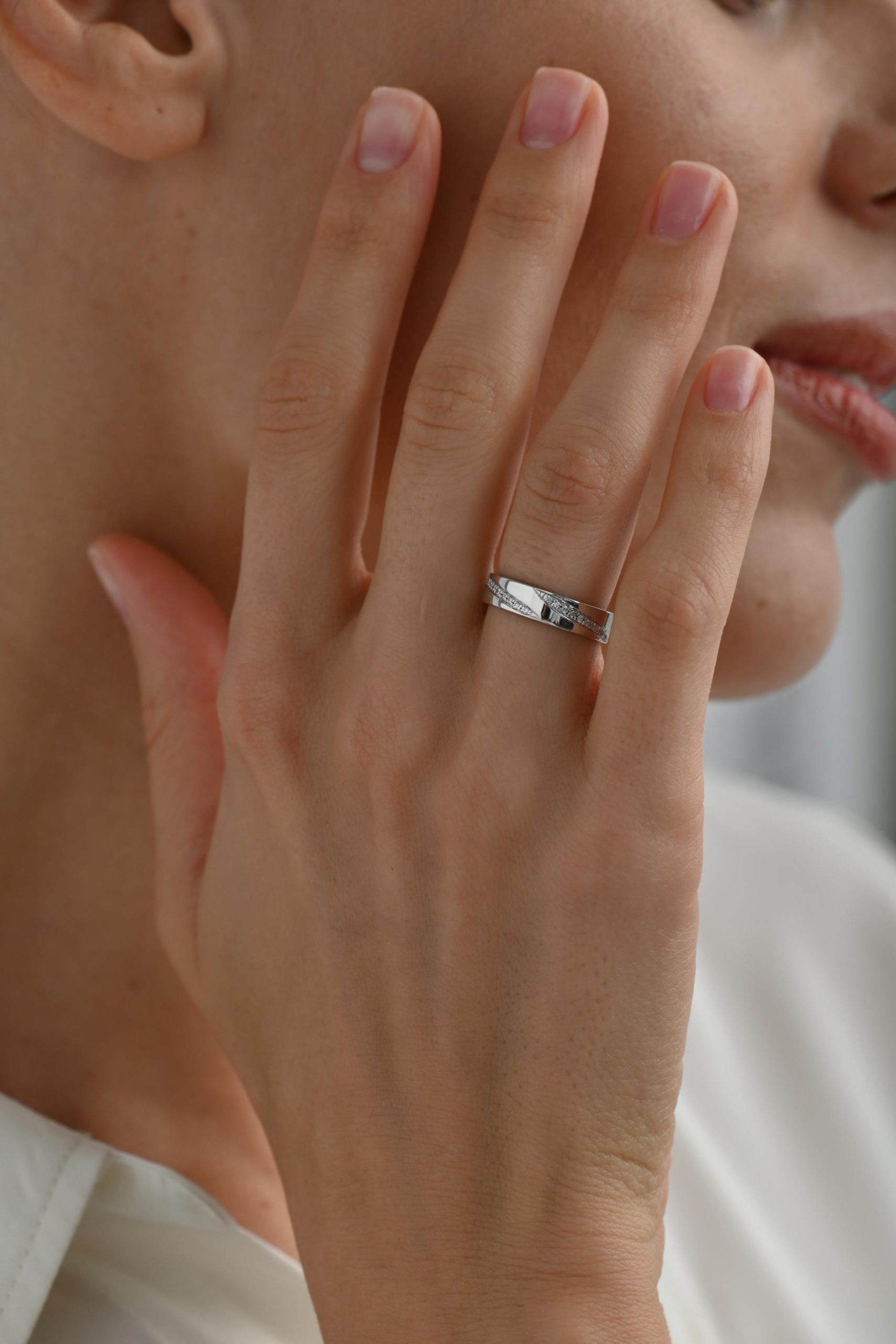 Эффектный акцент в рамках классики: кольцо-шайба с диагональными дорожками бриллиантов. Нестандартное расположение камней придаёт дизайну динамику и свежесть, делая привычную форму кольца неожиданно выразительной.