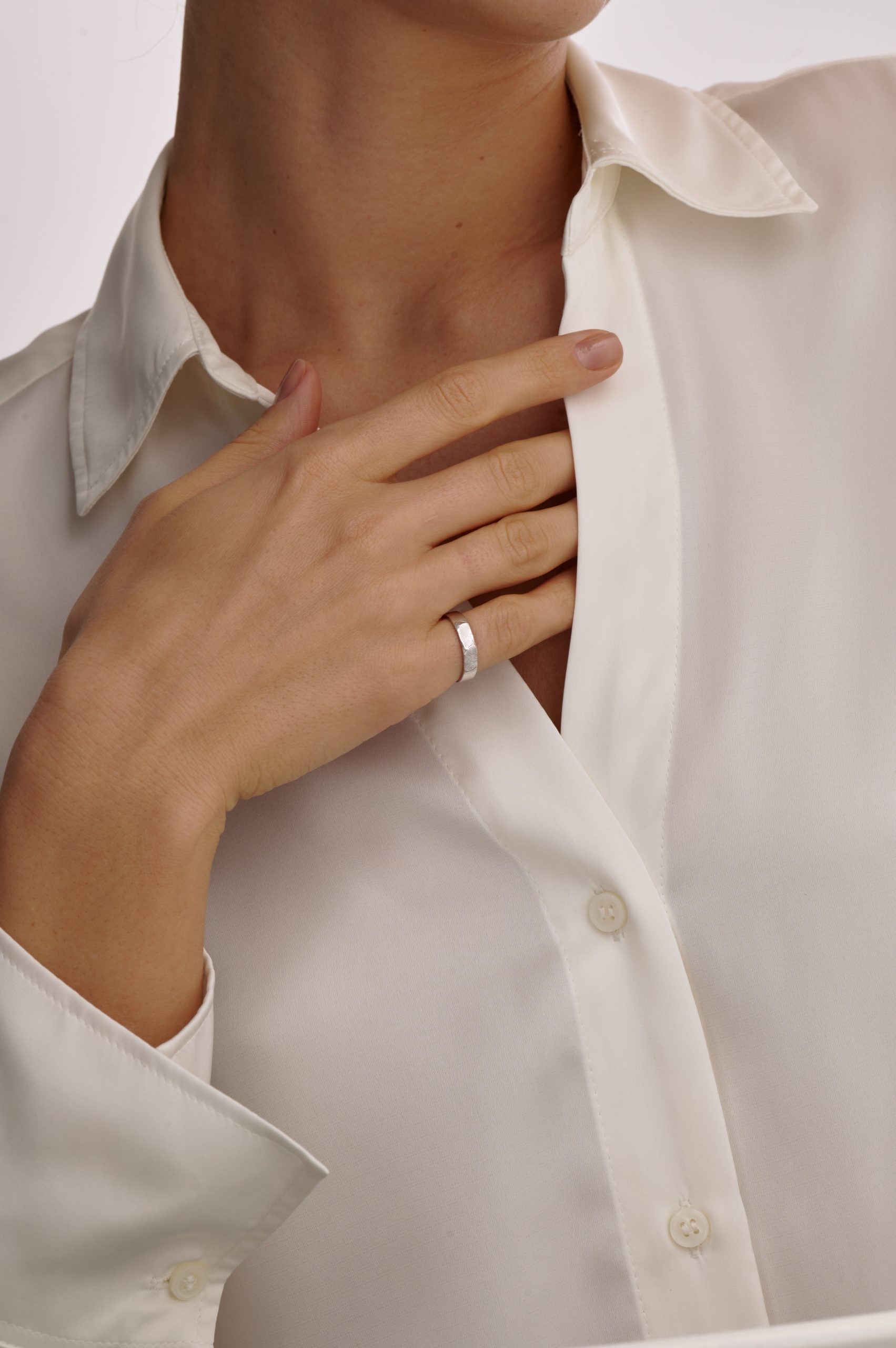 Кольцо на фото представлено в серебре, шириной 4 мм.
