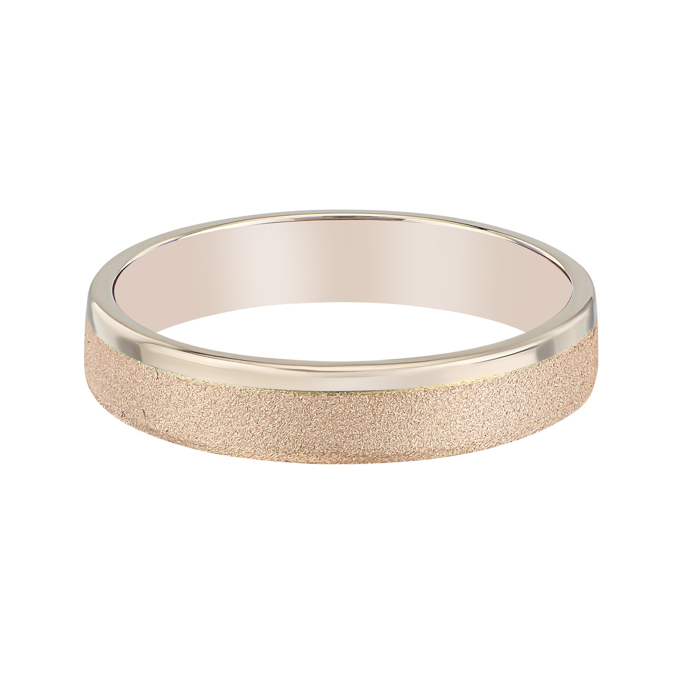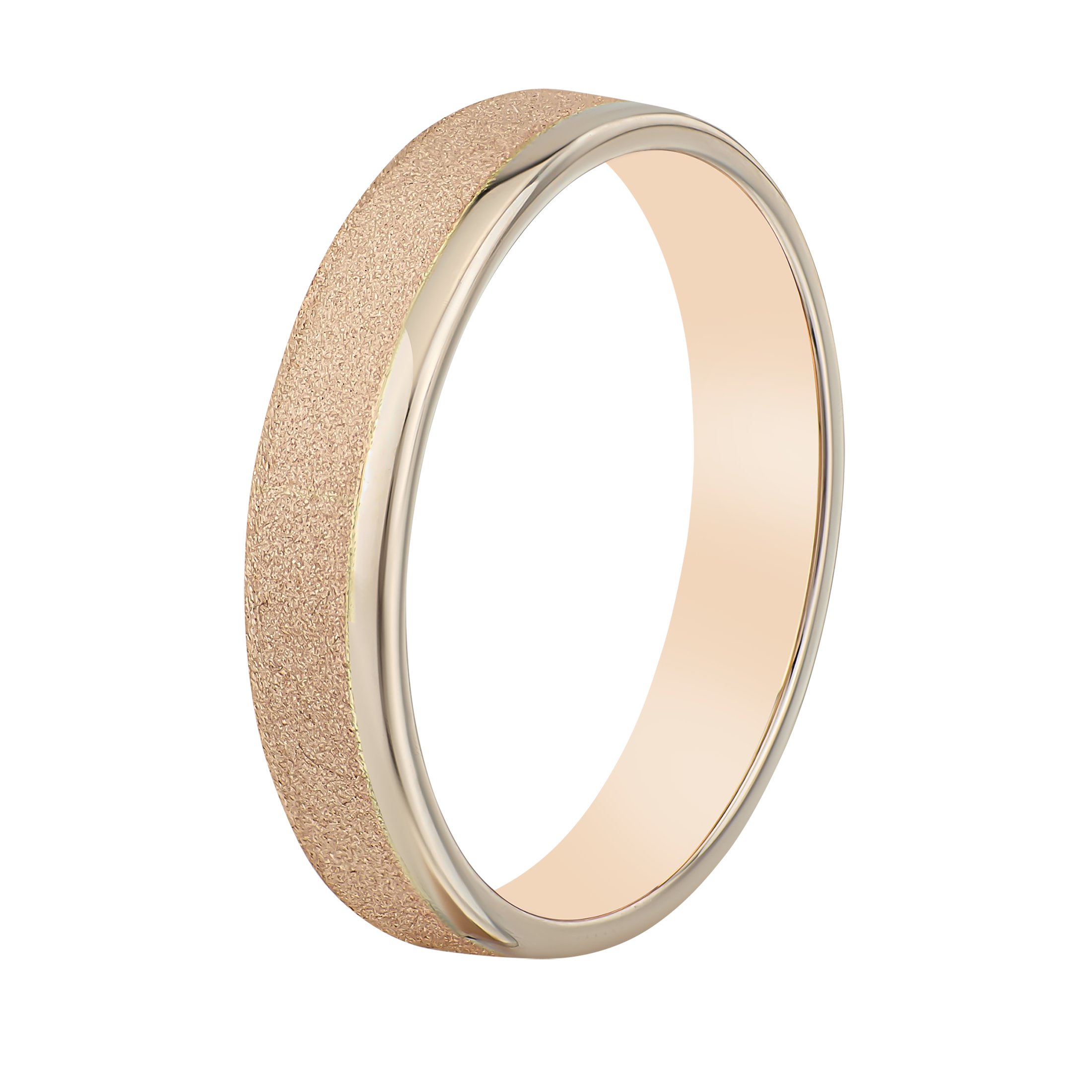 Кольцо обручальное закругленная шайба с алмазной матовкой и одним глянецевым краем в розовом золоте