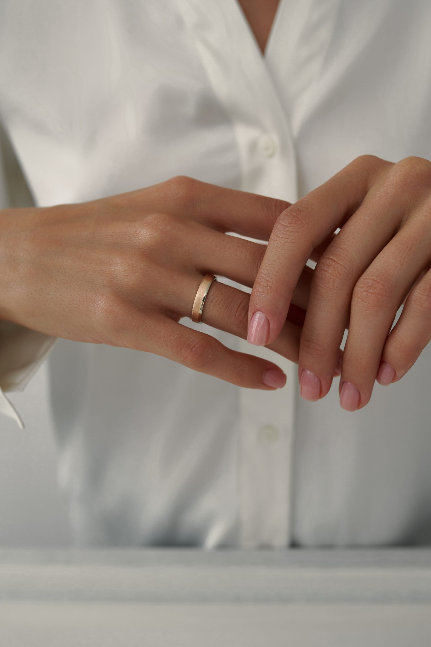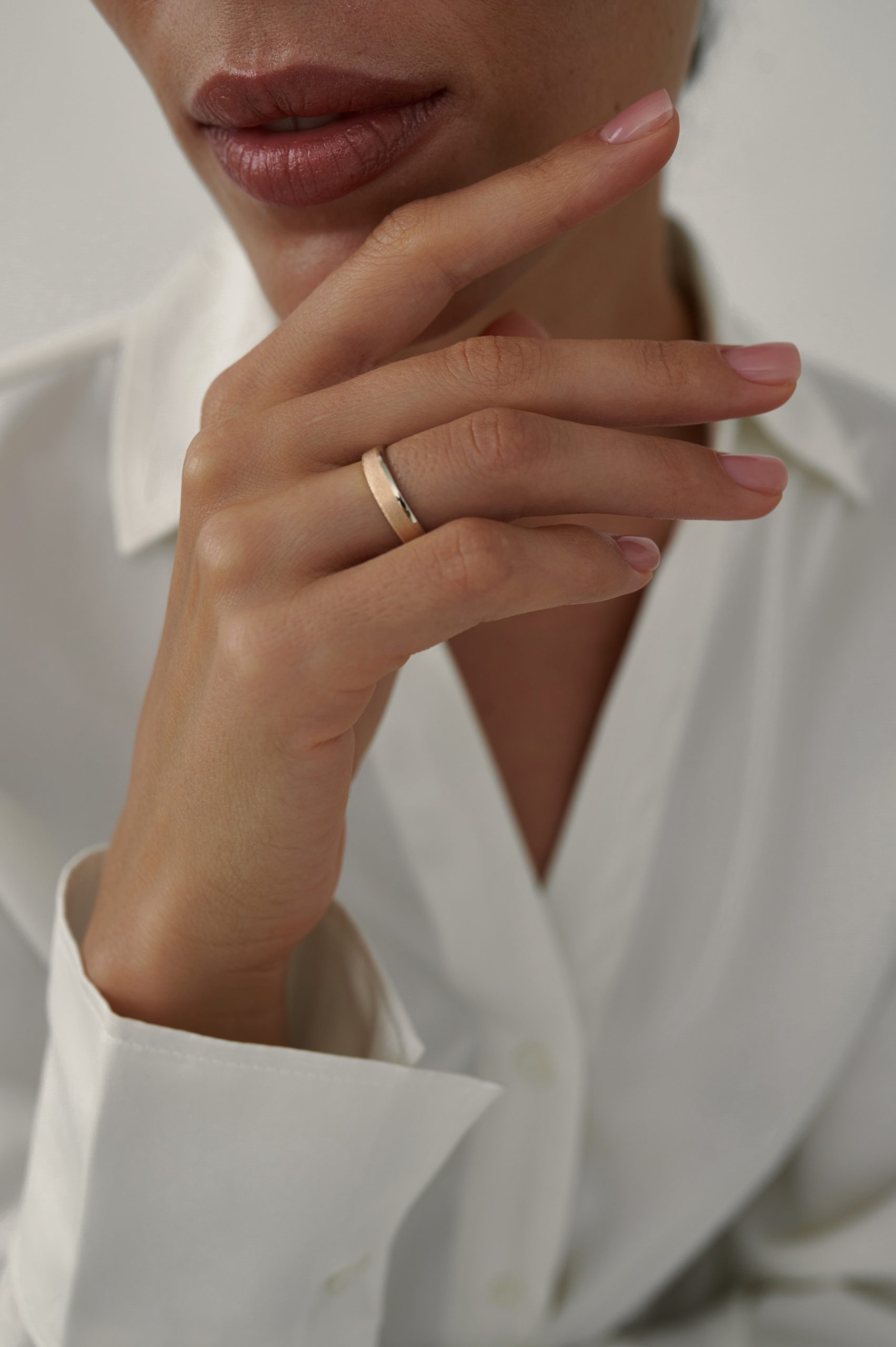 *Кольцо на фото представлено в розовом золоте, шириной 4 мм