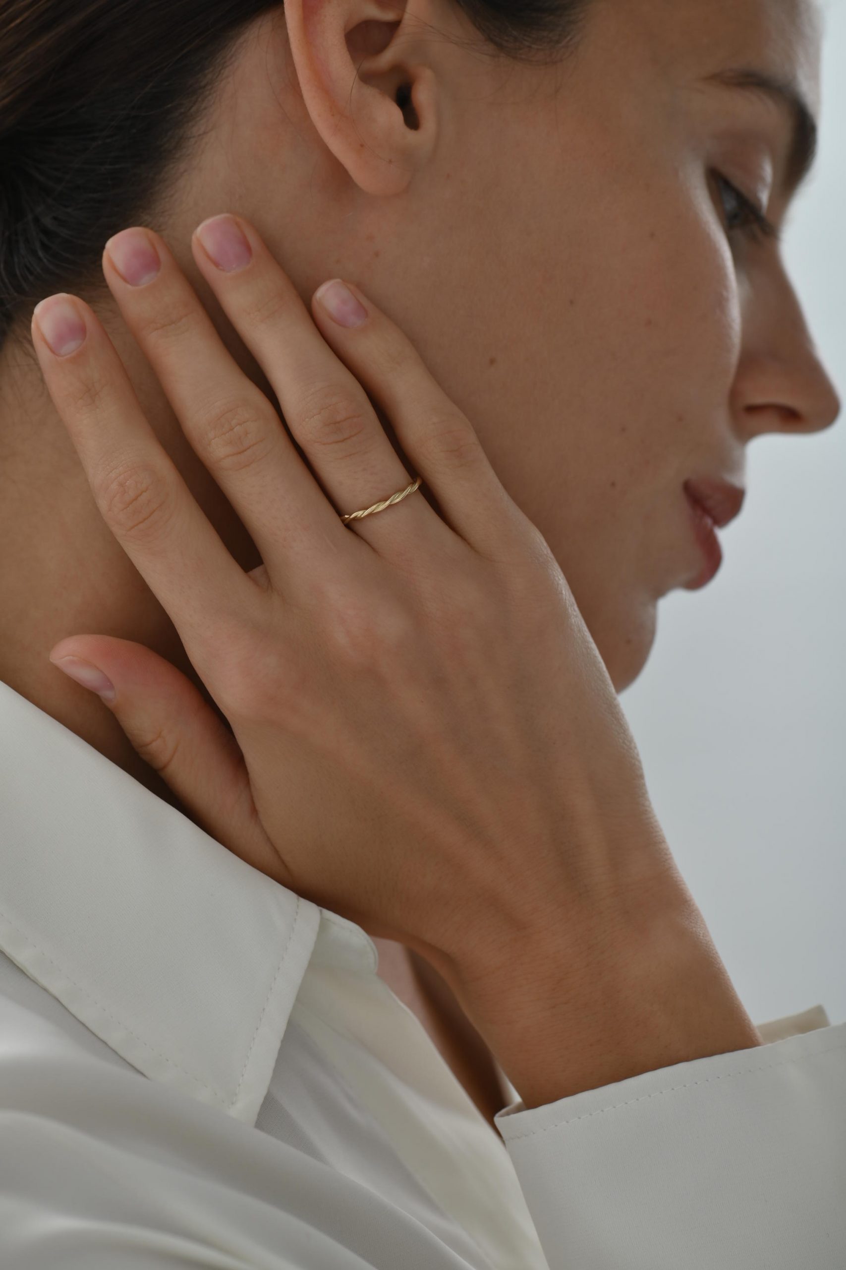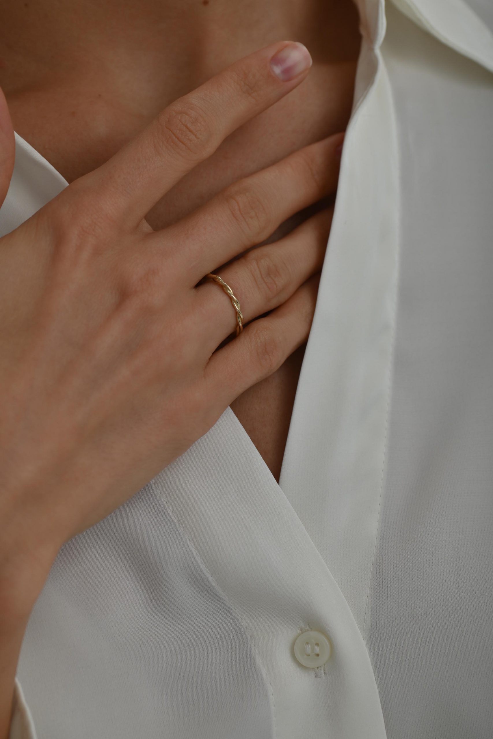 Это кольцо — тонкое, лёгкое, будто нарисованное одним движением. Переплетённые линии или проволочная форма создают ощущение воздушности и движения. Его часто выбирают как дополнение к помолвочному или обручальному кольцу.