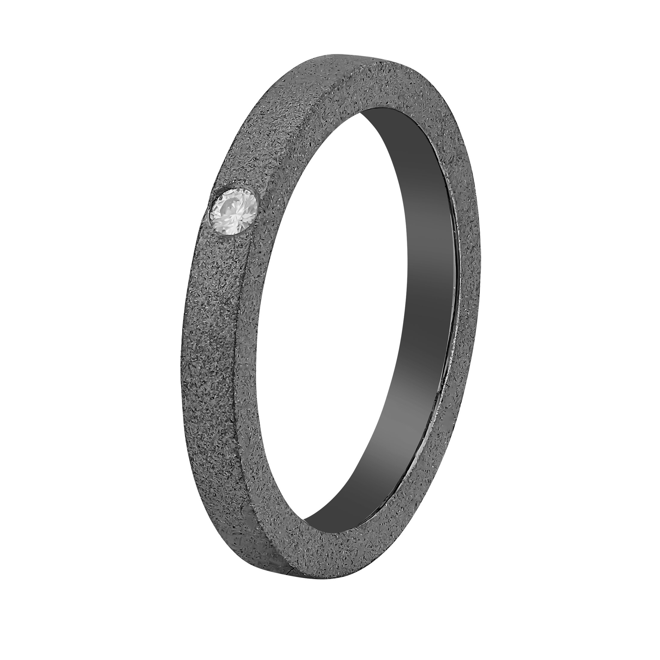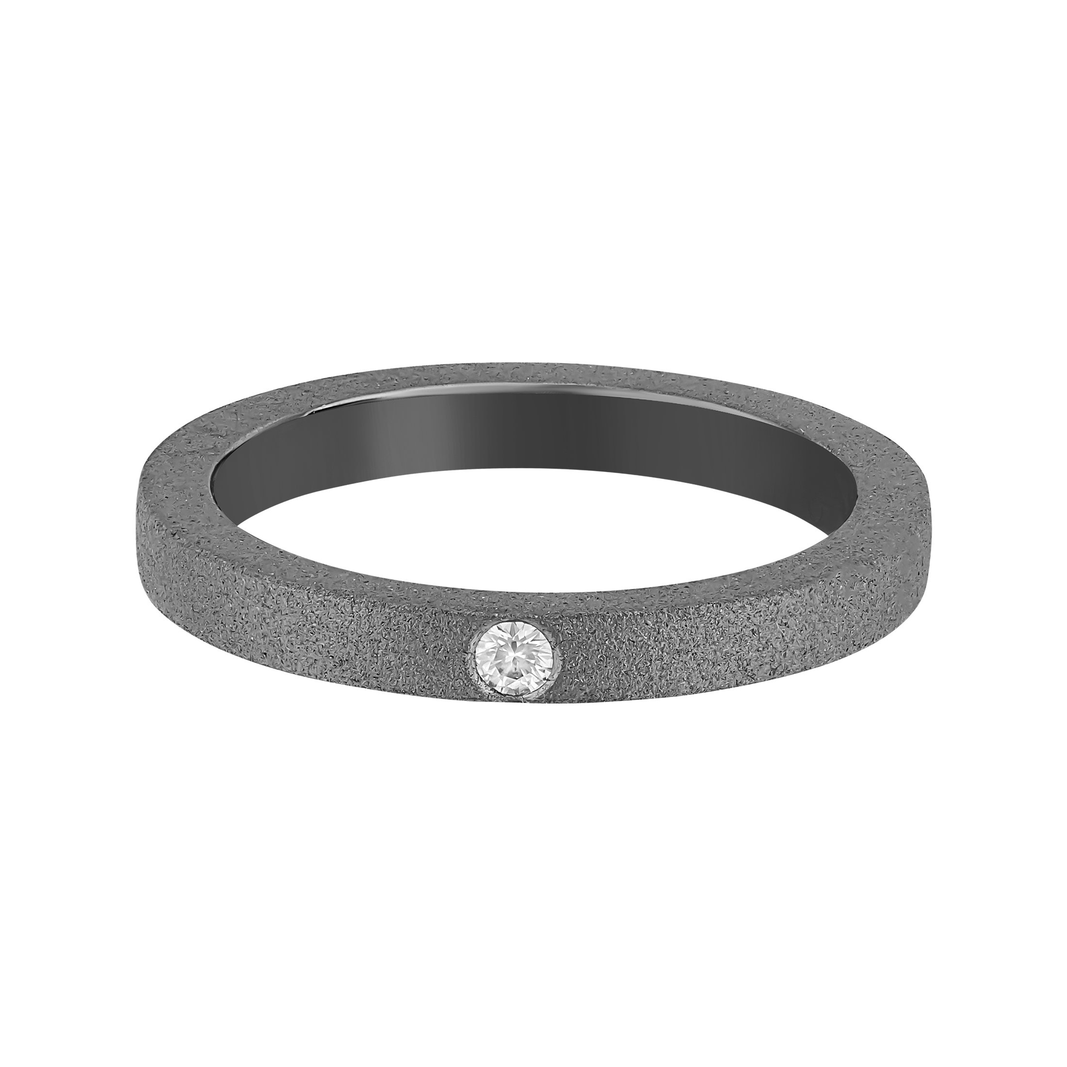 Кольцо прямая шайба с алмазной матовкой, черным родием и бриллиантом