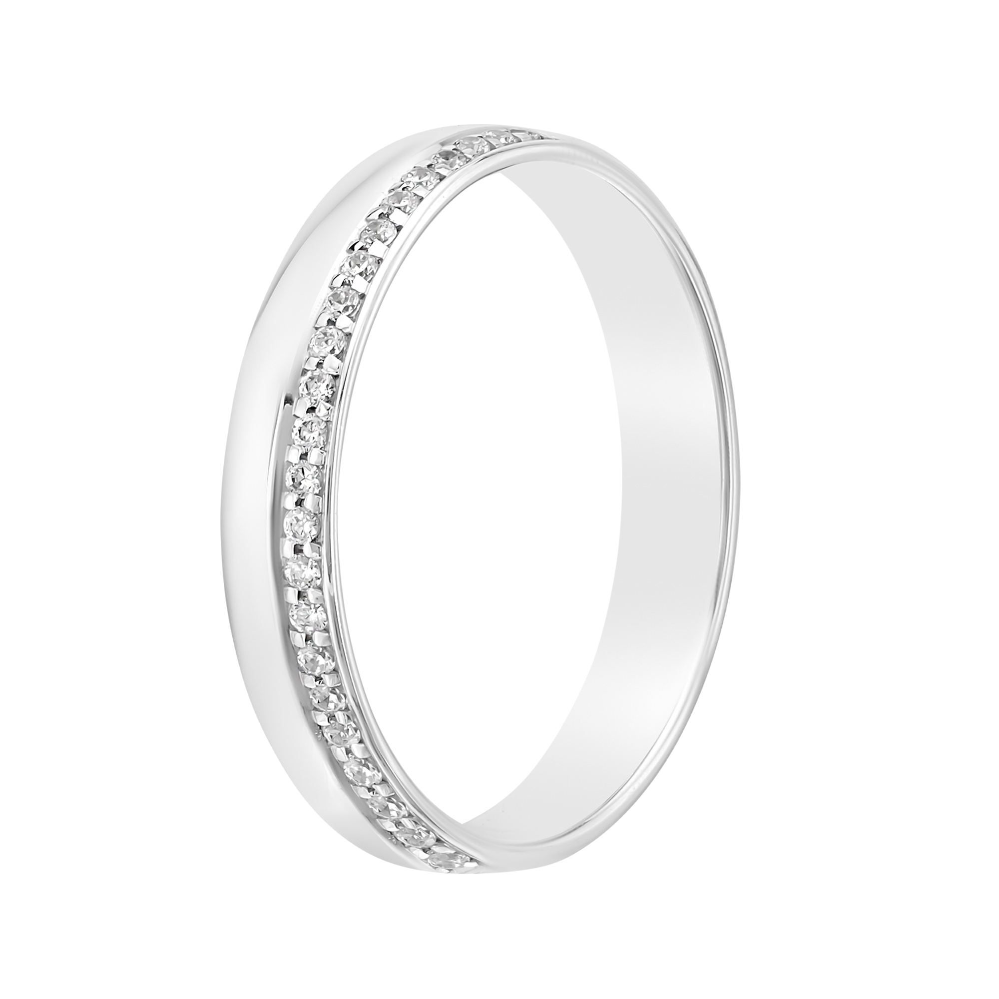 Кольцо закругленная шайба с закрытой дорожкой бриллиантов с краю 1 мм
