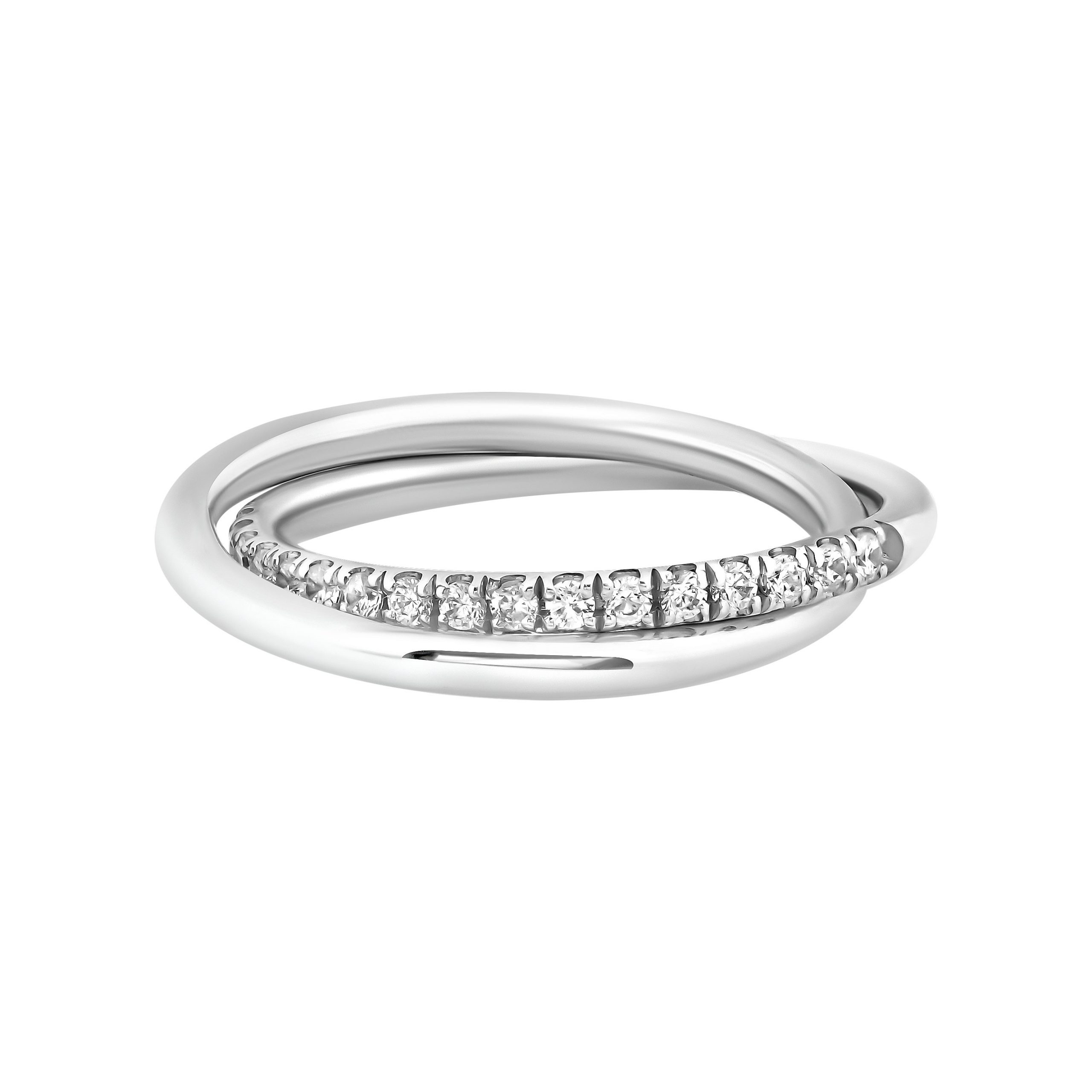 Кольцо-змейка состоит из тонких, изысканных колец, которые создают легкий и воздушный образ. Сочетание классического круглого кольца и изящной дорожки из бриллиантов придает ему необыкновенную игру бликов и утонченность. Кольцо выглядит очень нежно и всегда в движении.