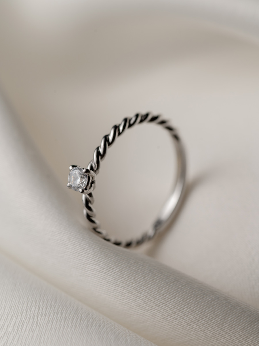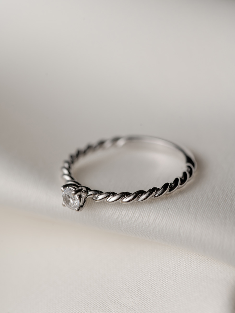 Помолвочное кольцо с камнем в форме круг и оправой-переплетение