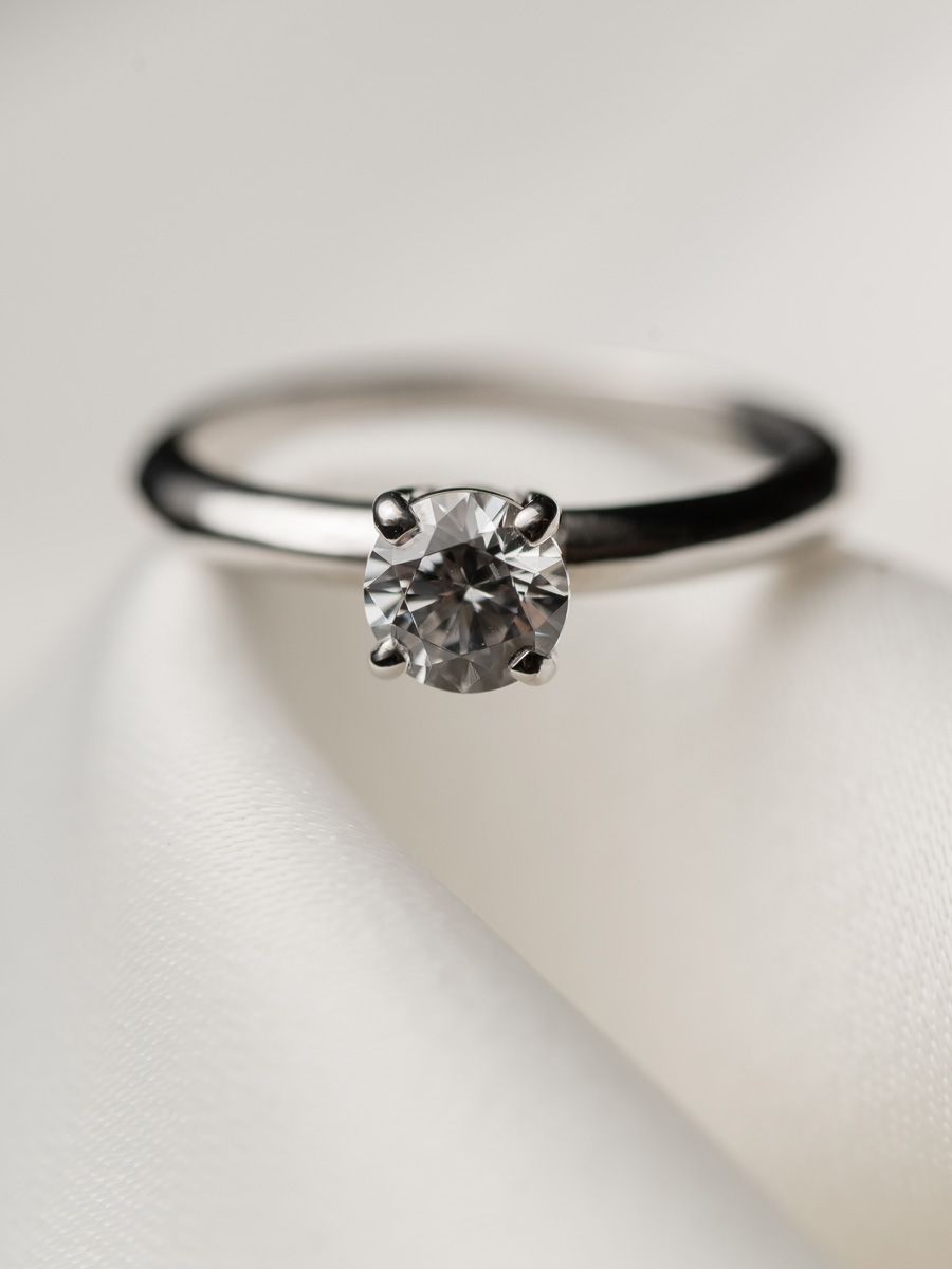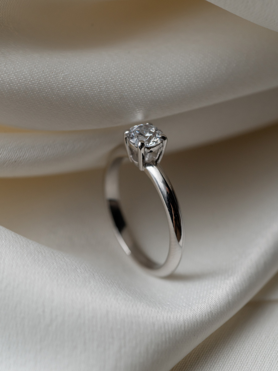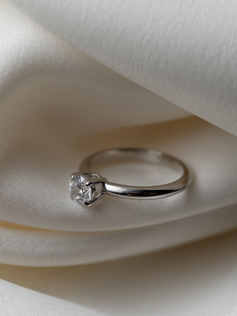 На фото изображено помолвочное кольцо с бриллиантом «круг» 6 мм (0,8 Ct) из белого золота 585 (с родием).