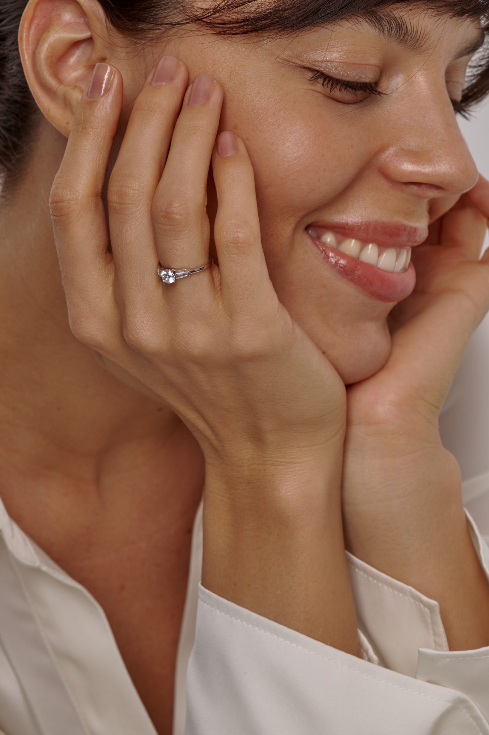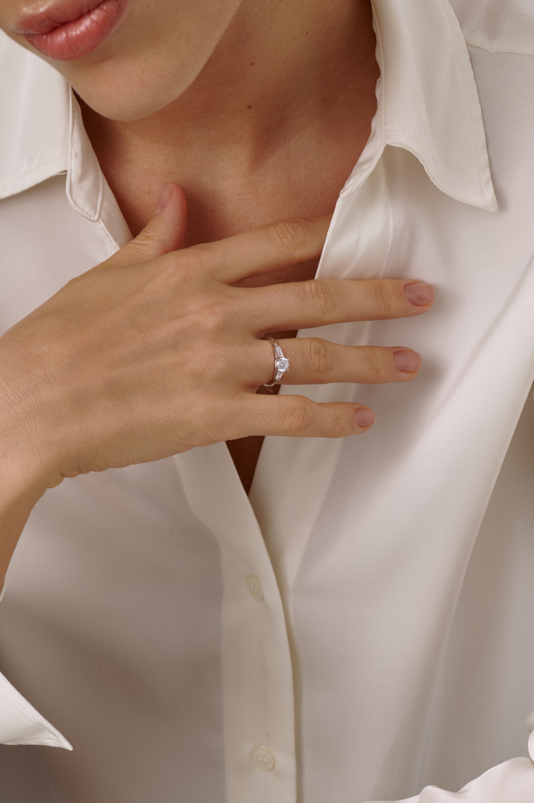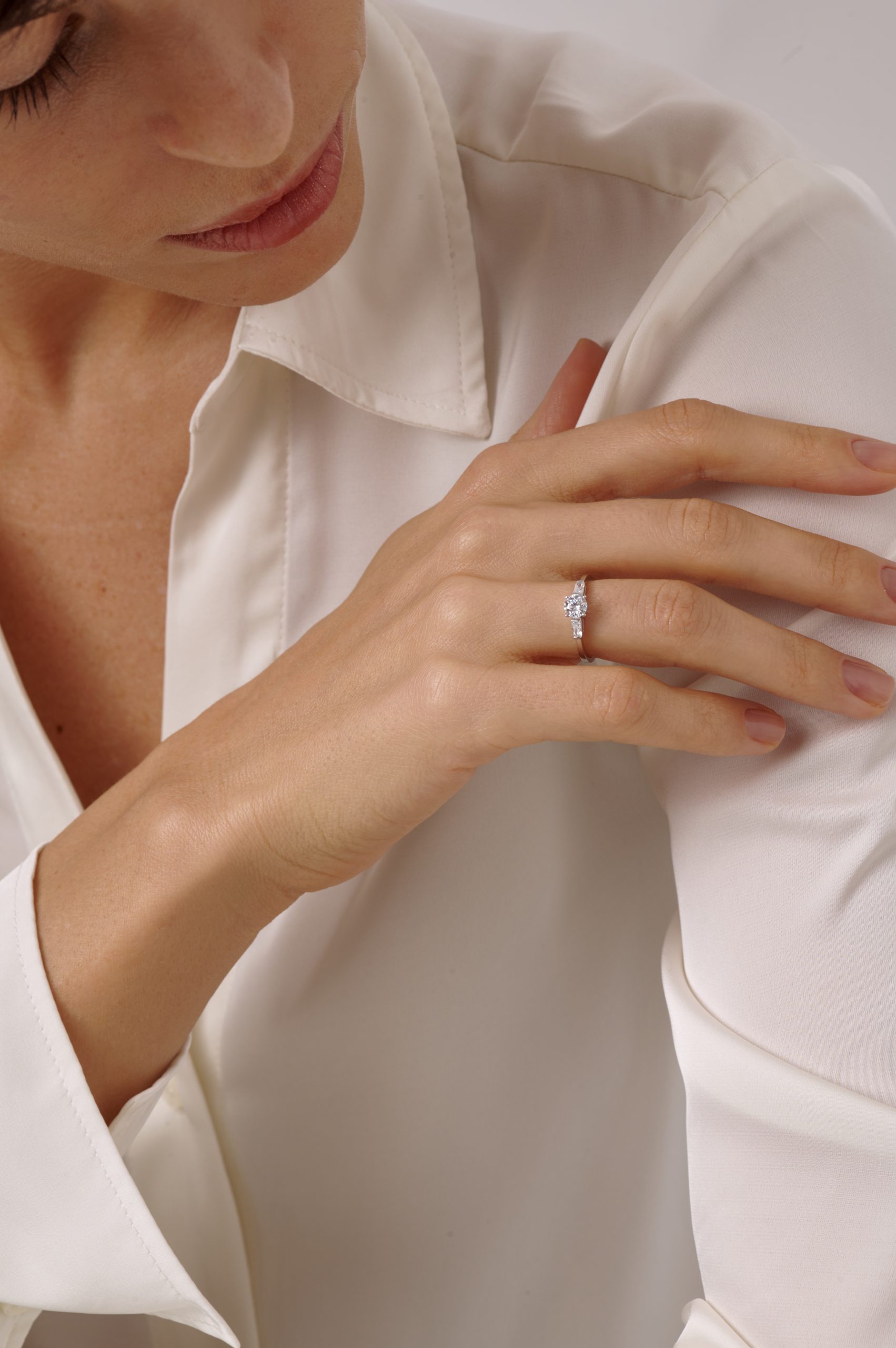Помолвочное кольцо с камнями в форме круг и трапеция