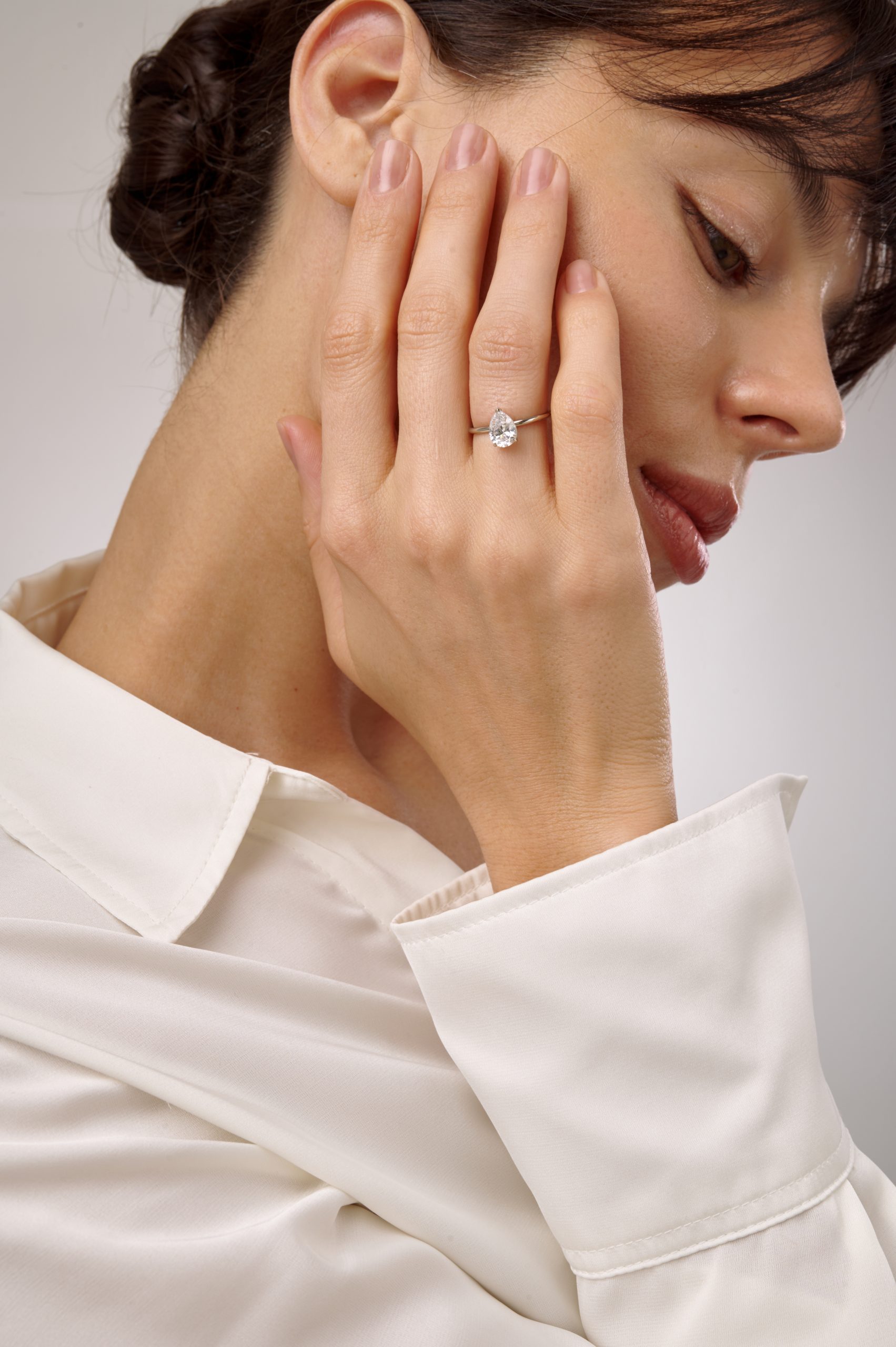 Помолвочное кольцо с огранкой груша в белом золоте
