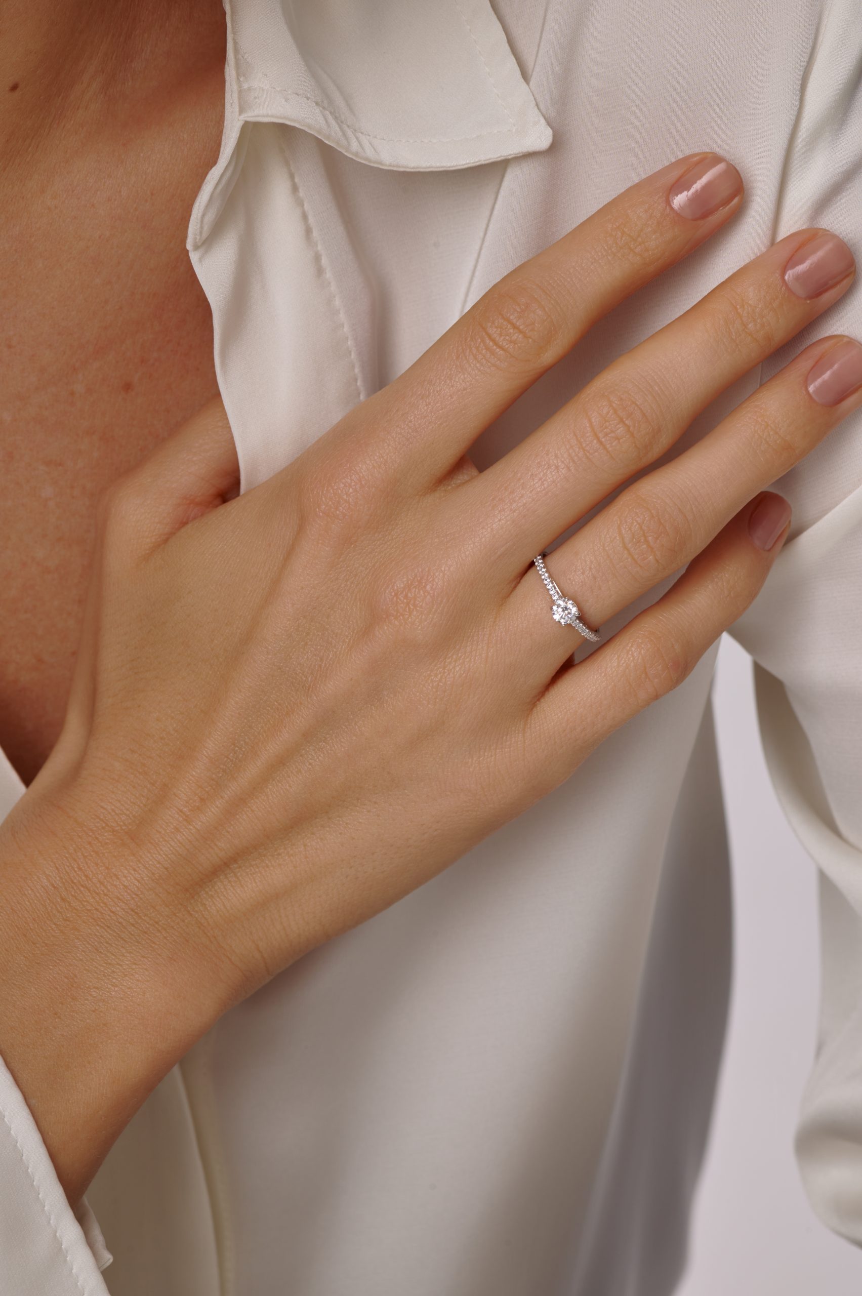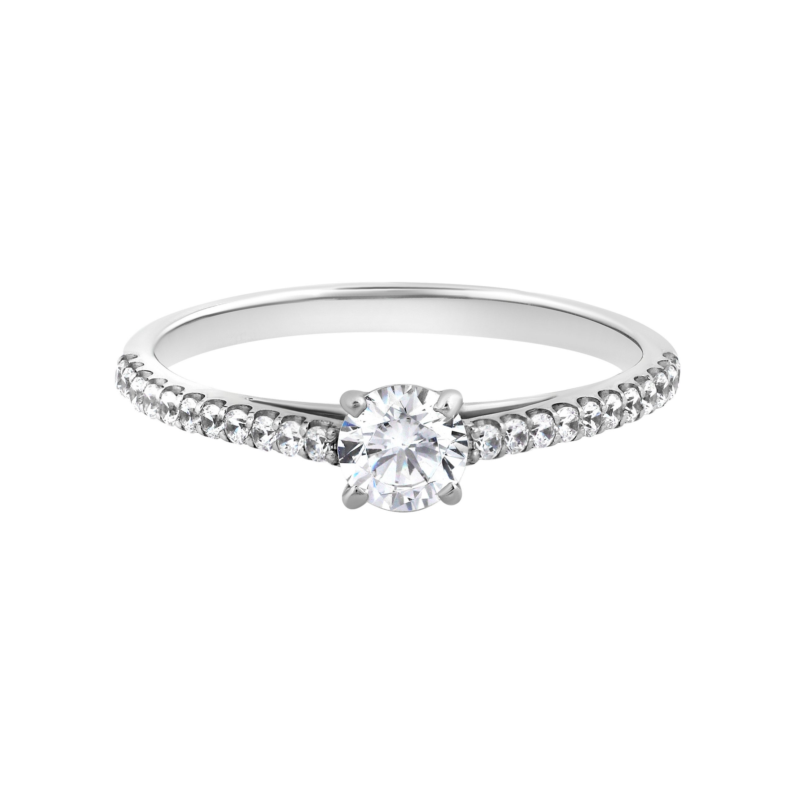 Помолвочное кольцо с огранкой круг и открытой дорожкой бриллиантов
