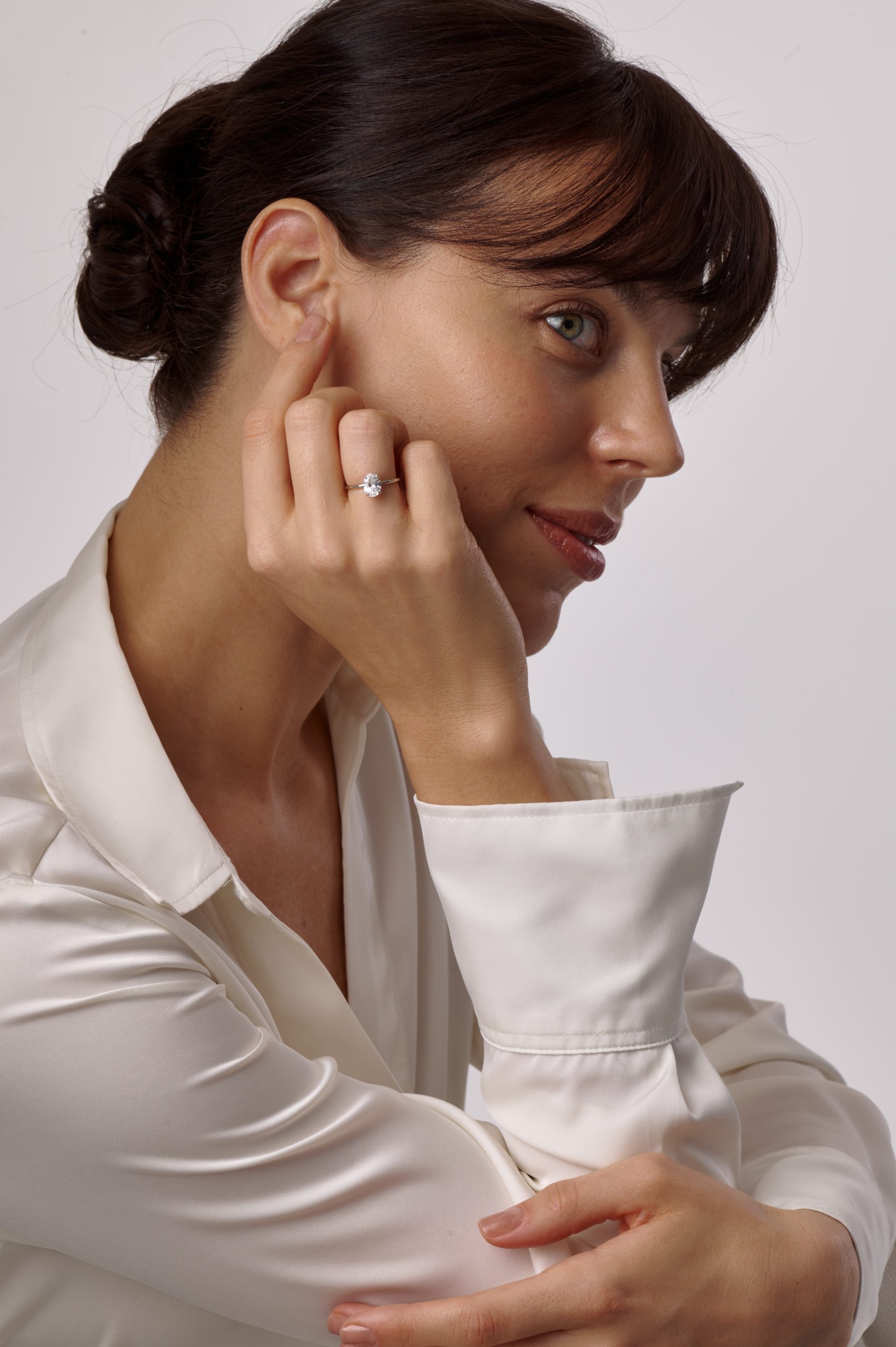 Помолвочное кольцо с огранкой овал в белом золоте