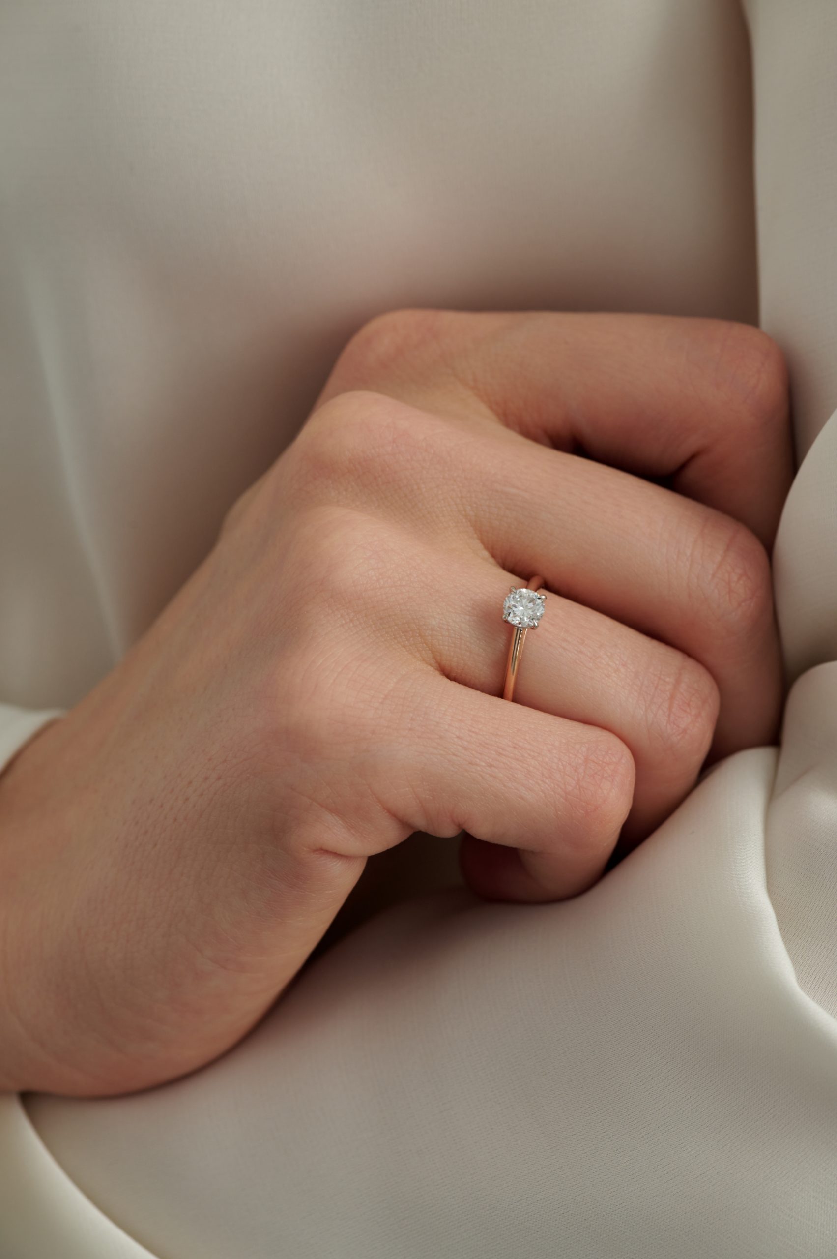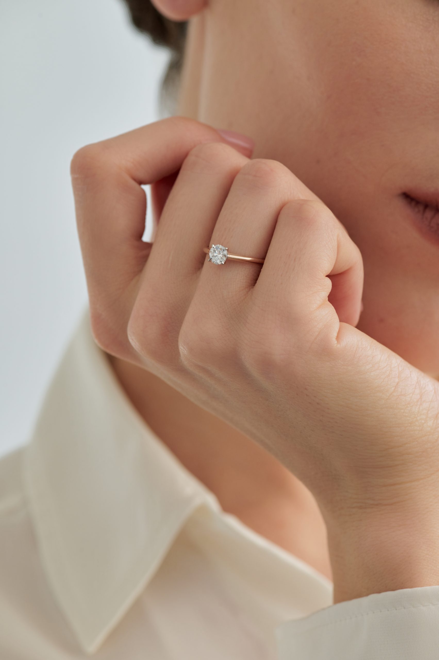 Помолвочное кольцо в розовом золоте с огранкой круг