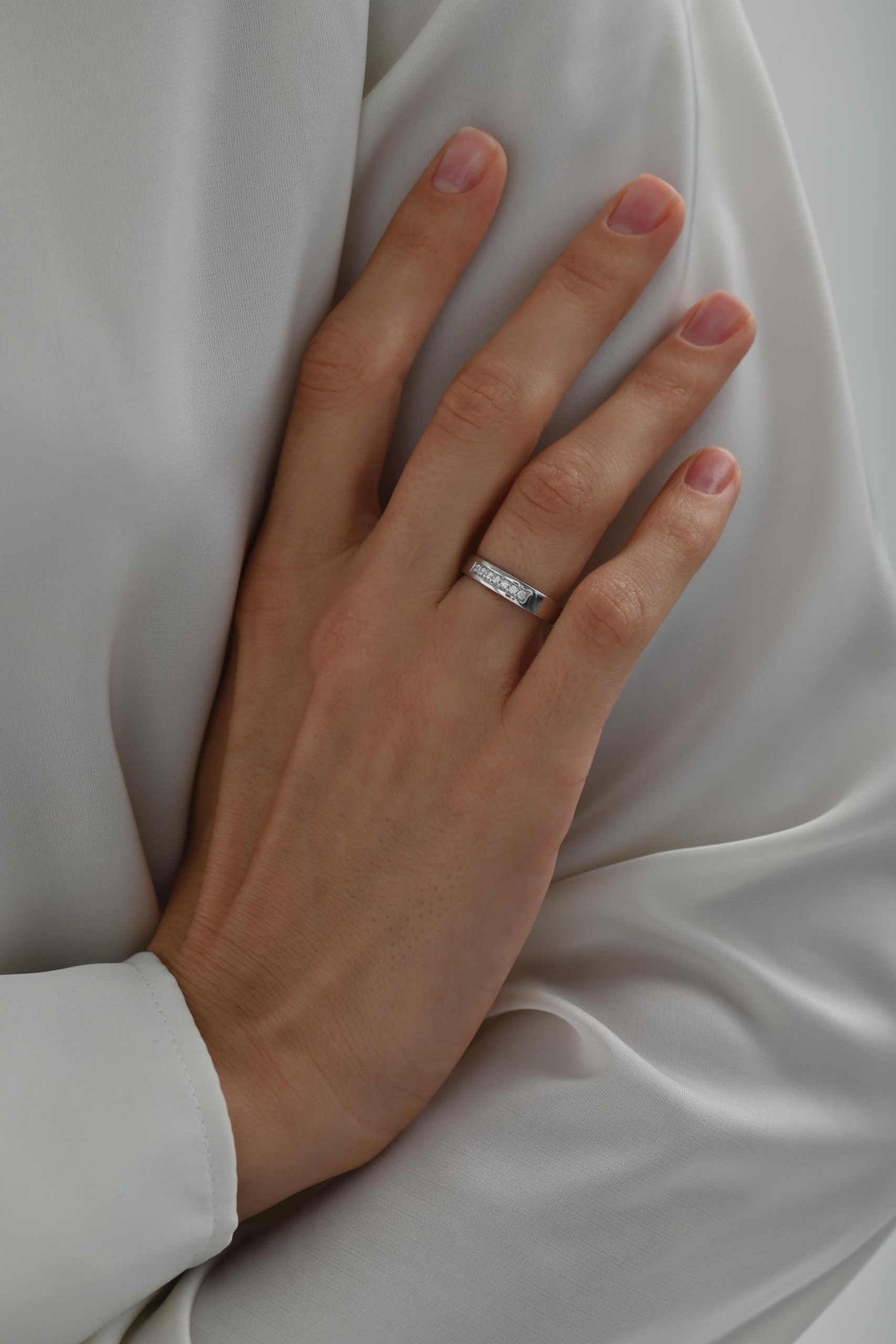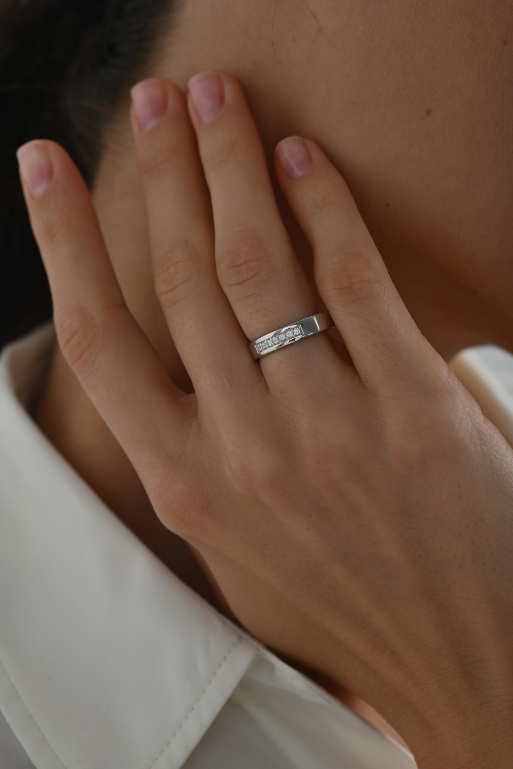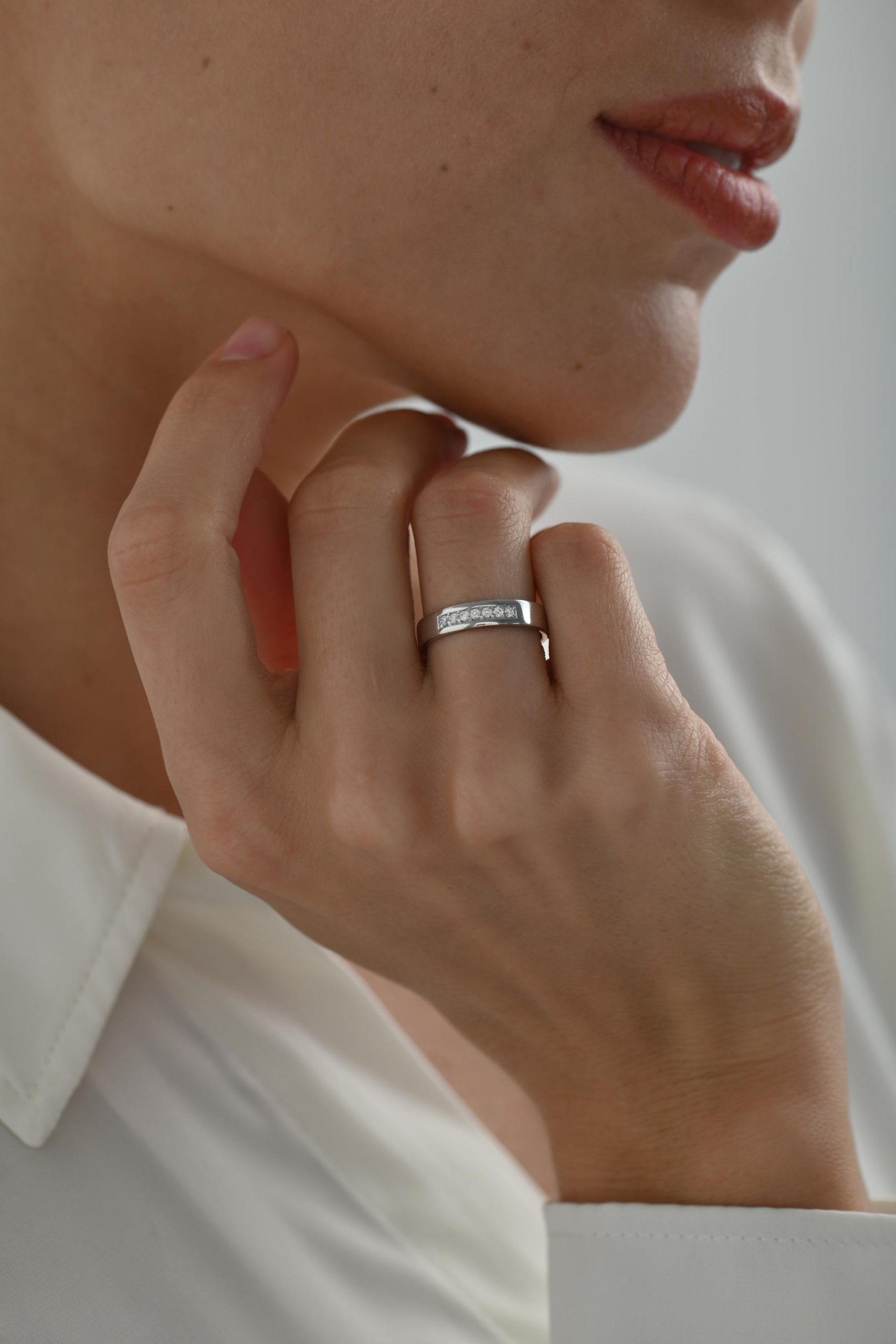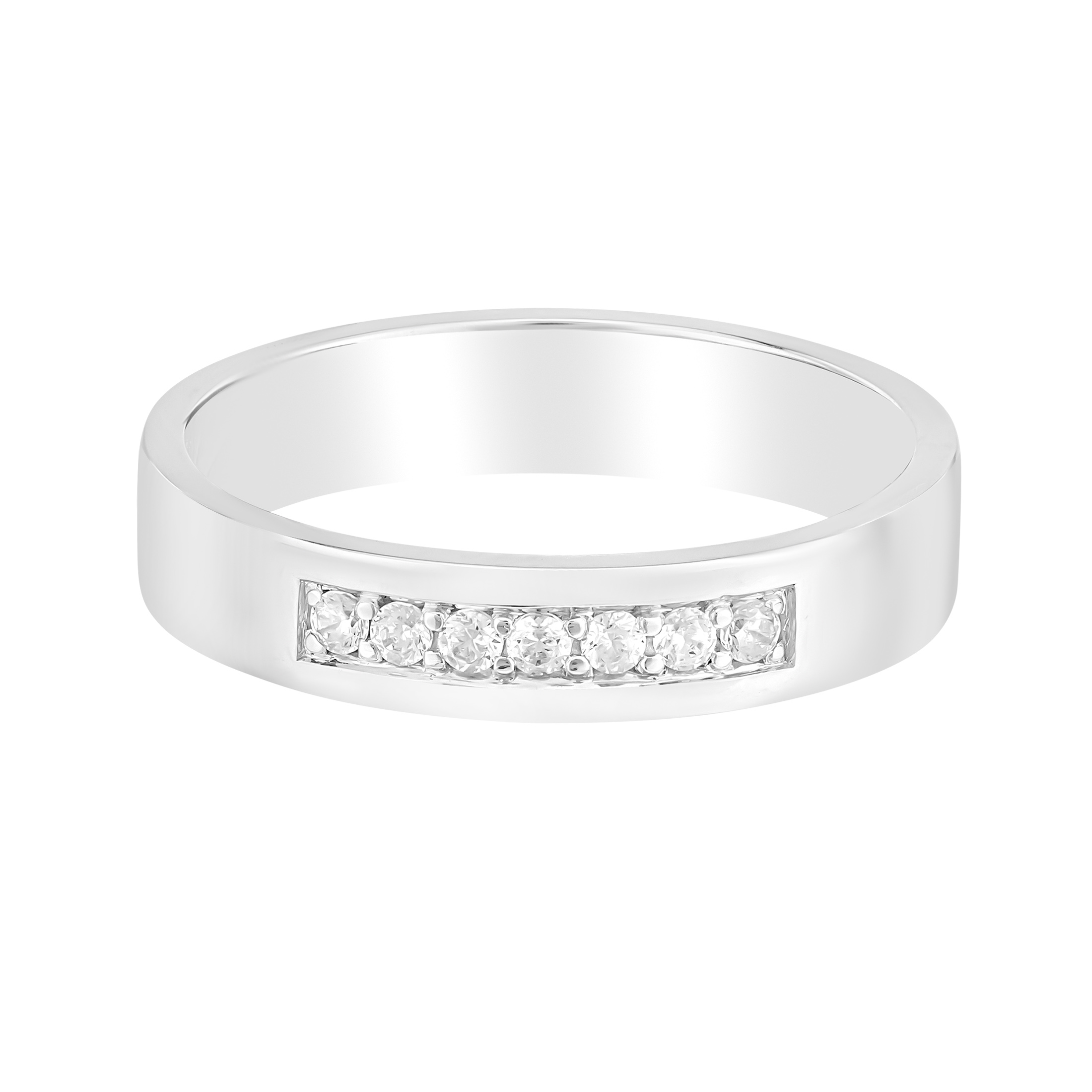 Семь — счастливое число, и в этом дизайне оно сияет особенно ярко. Бриллианты аккуратно выстроены в ровную линию, подчёркивая чистоту формы и добавляя кольцу особую энергетику.