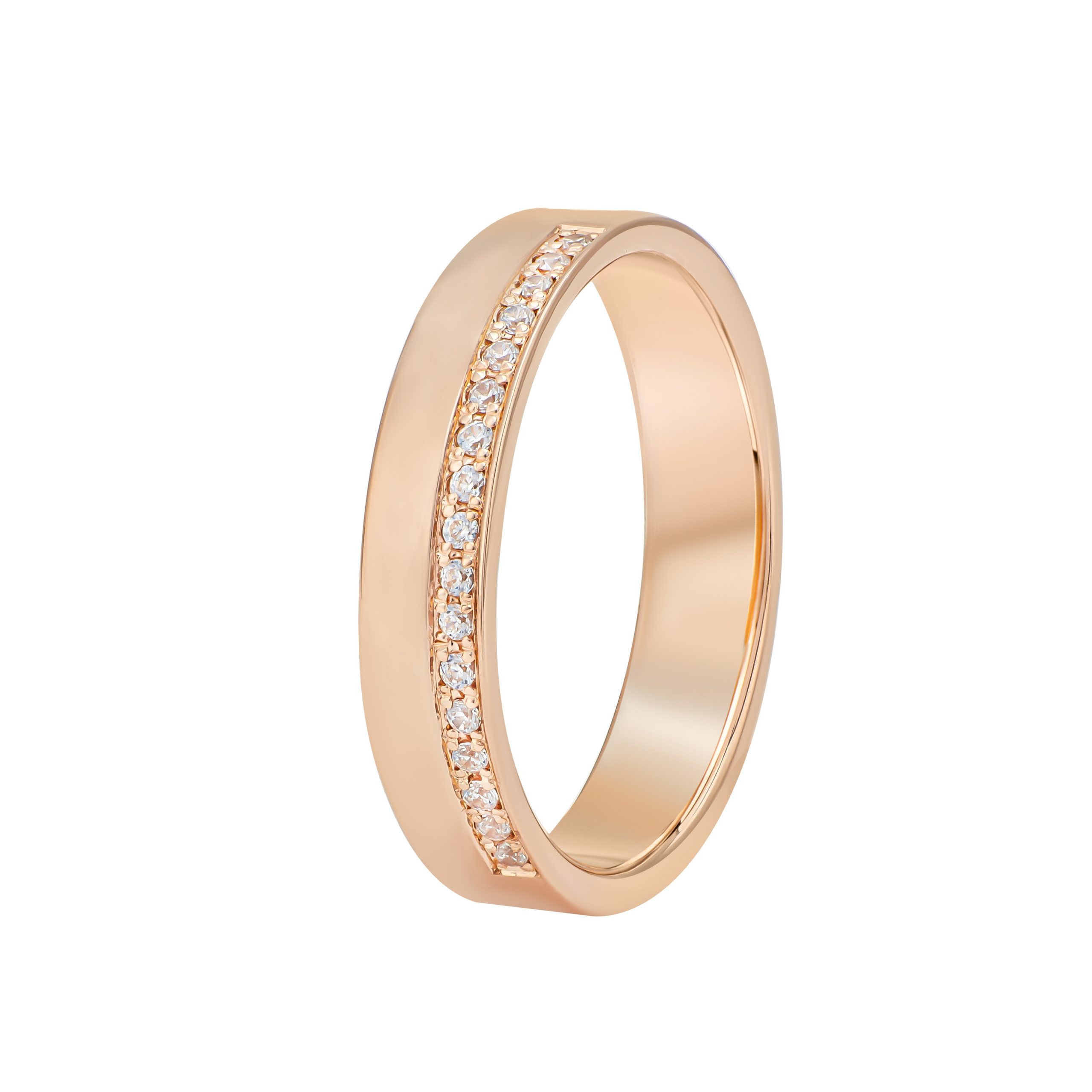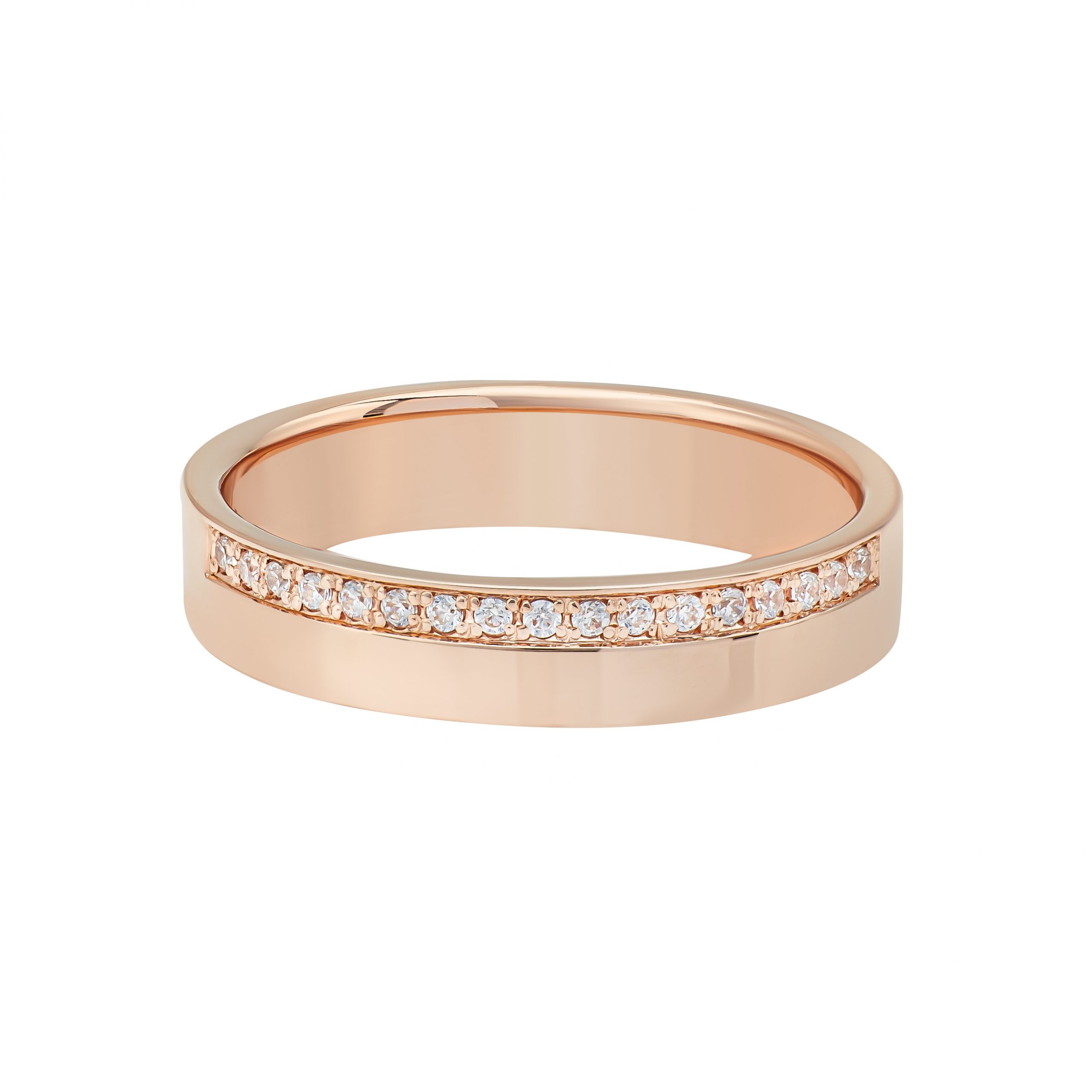Прямая шайба с закрытой дорожкой и бриллиантами с краю в розовом золоте