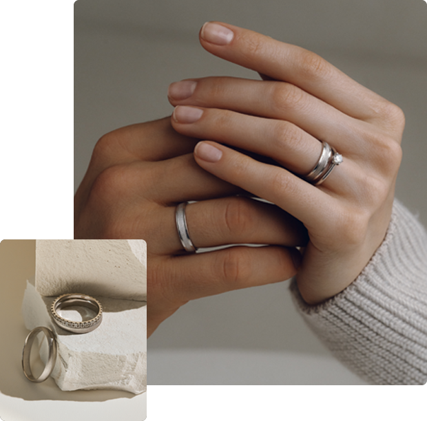 Примерка колец — обязательный этап для выбора идеальных колец. В нашей студии представлено 200+ дизайнов, и на примерке вы можете примерить все возможные варианты, а также подобрать кольца по своим уникальным параметрам: