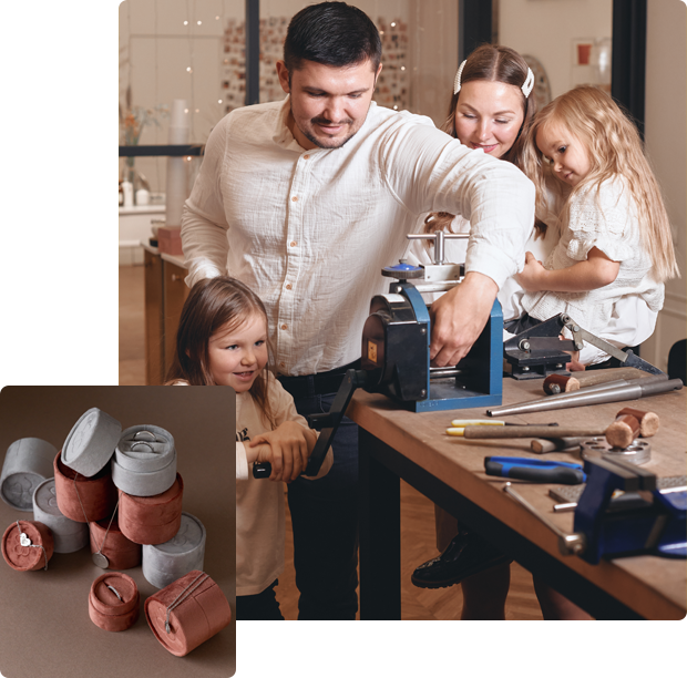 Семейный мастер-класс — это возможность для всей семьи погрузиться в увлекательный мир творчества и ювелирного ремесла. Здесь каждый член семьи может выразить свою индивидуальность и воплотить свои идеи, изготовив кольцо, кулон или браслет. Такие изделия обретают историю и эмоциональную ценность: они становятся символом единства и прочной привязанности друг к другу.